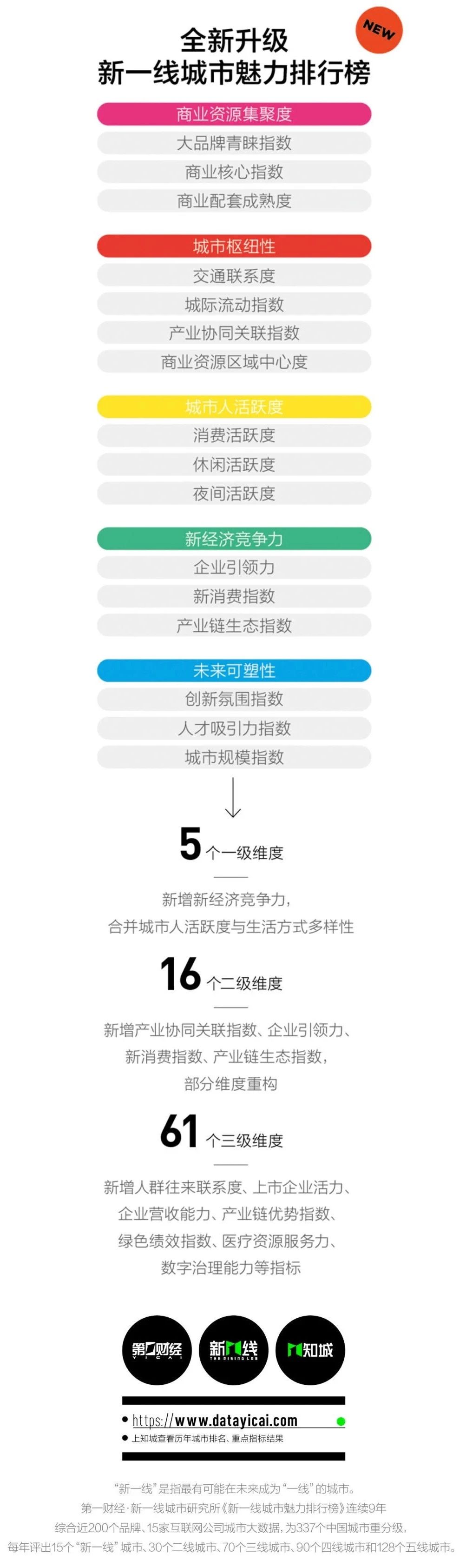 2024年起,基于城市研究所长期关注到的变化,第一财经·新一线城市研究所将榜单更名为“新一线城市魅力排行榜”,并对评价体系作了一轮较大的改版。