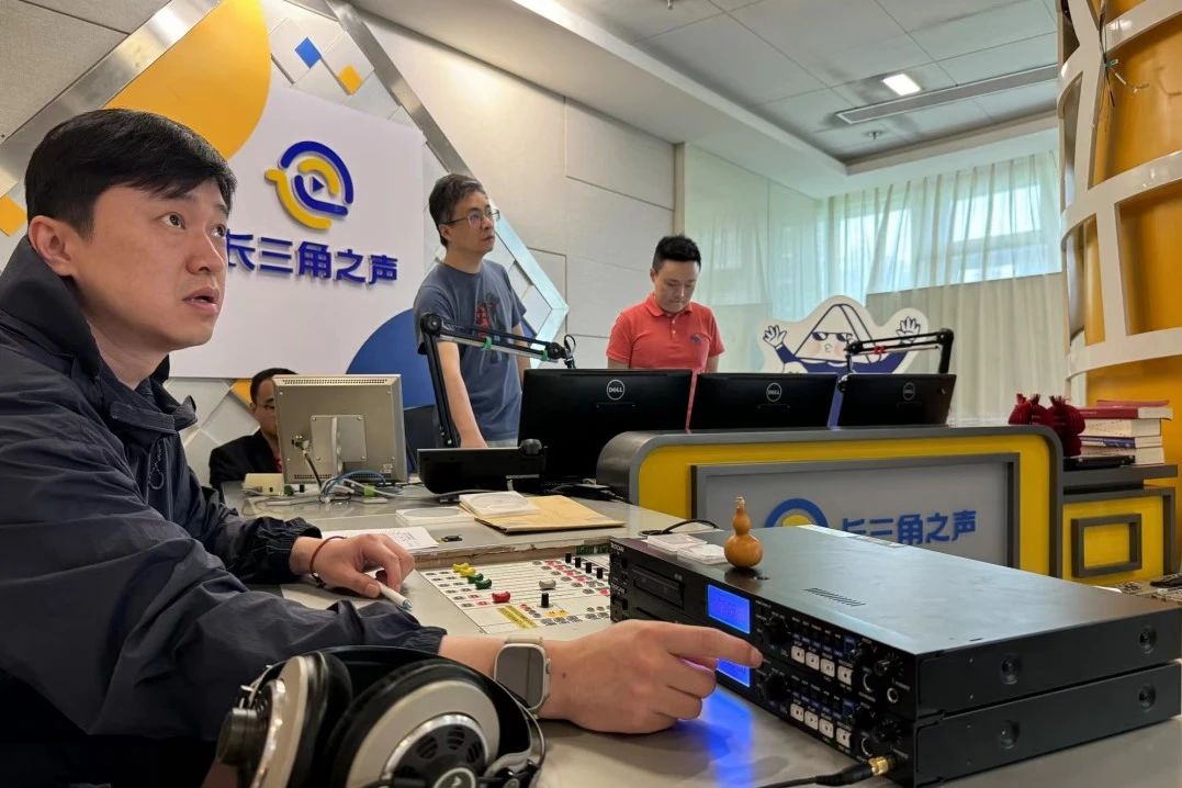 为确保考生在考场上专心答卷,技术团队在“长三角之声”直播室里,用精准技术和默契配合,确保每个声音都能清晰、准确传递到每个角落。