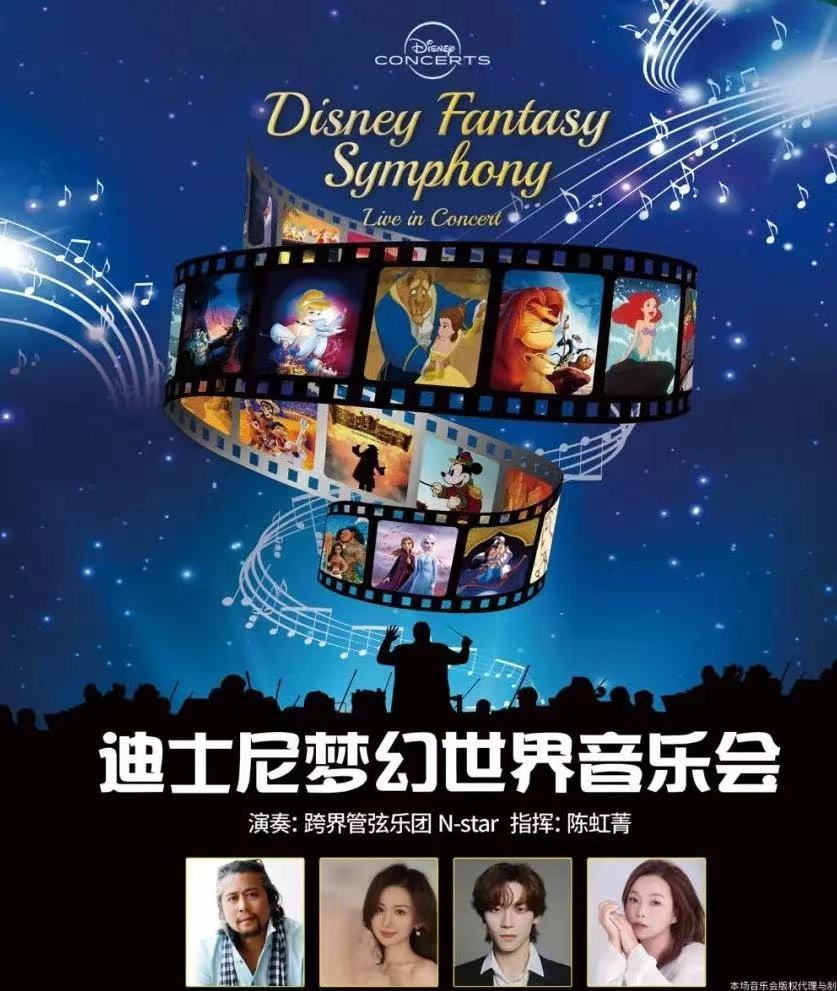 中国新生代音乐剧演员中的代表王梓庭、蔡淇、凌其尔与迪士尼音乐会首演歌唱家Robert Vicencio、跨界管弦乐团N-star合作,呈现《阿拉丁》《狮子王》《小美人鱼》《寻梦奇缘》等家喻户晓的电影主题曲。