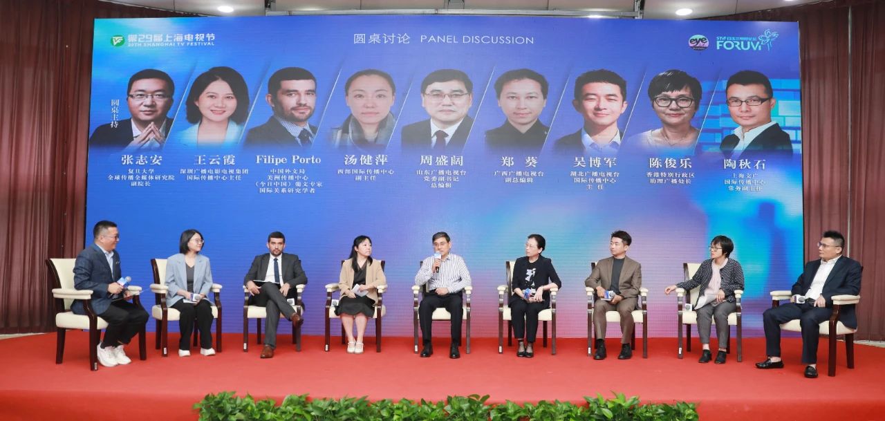 在论坛现场,来自山东、广西、湖北、重庆、上海、香港、深圳的广电媒体国际传播负责人以及中国外文局研究学者,还与复旦大学全球传播全媒体研究院副院长张志安一道,共同围绕全球媒体与国际传播主题,展开热烈的圆桌讨论,发表了独特见解和深刻洞察。