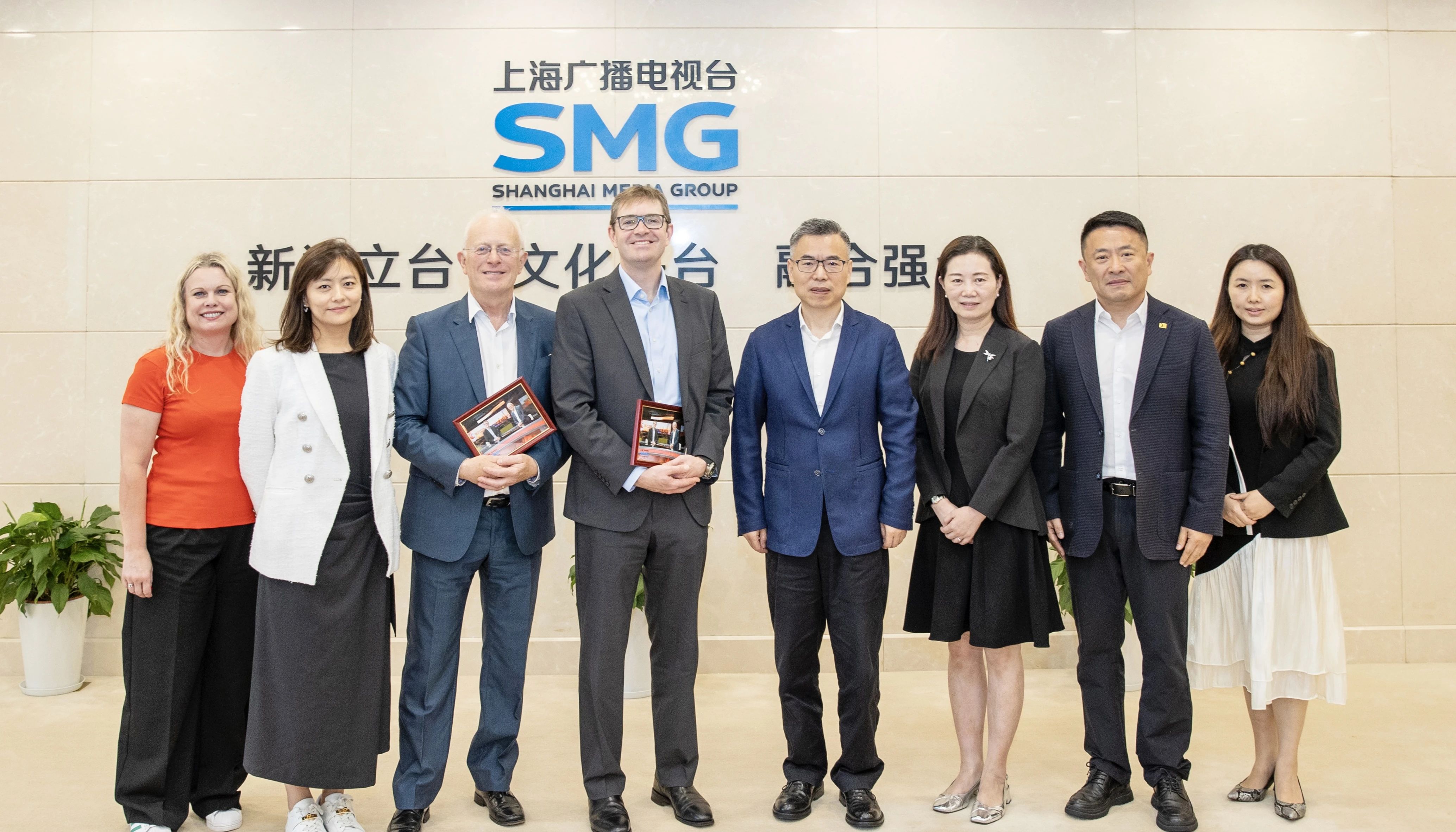 座谈会前,BBC Studios代表团参观了上视新媒体平台和智慧广电展示区、上海文广国际传播中心和东方卫视新闻演播室。