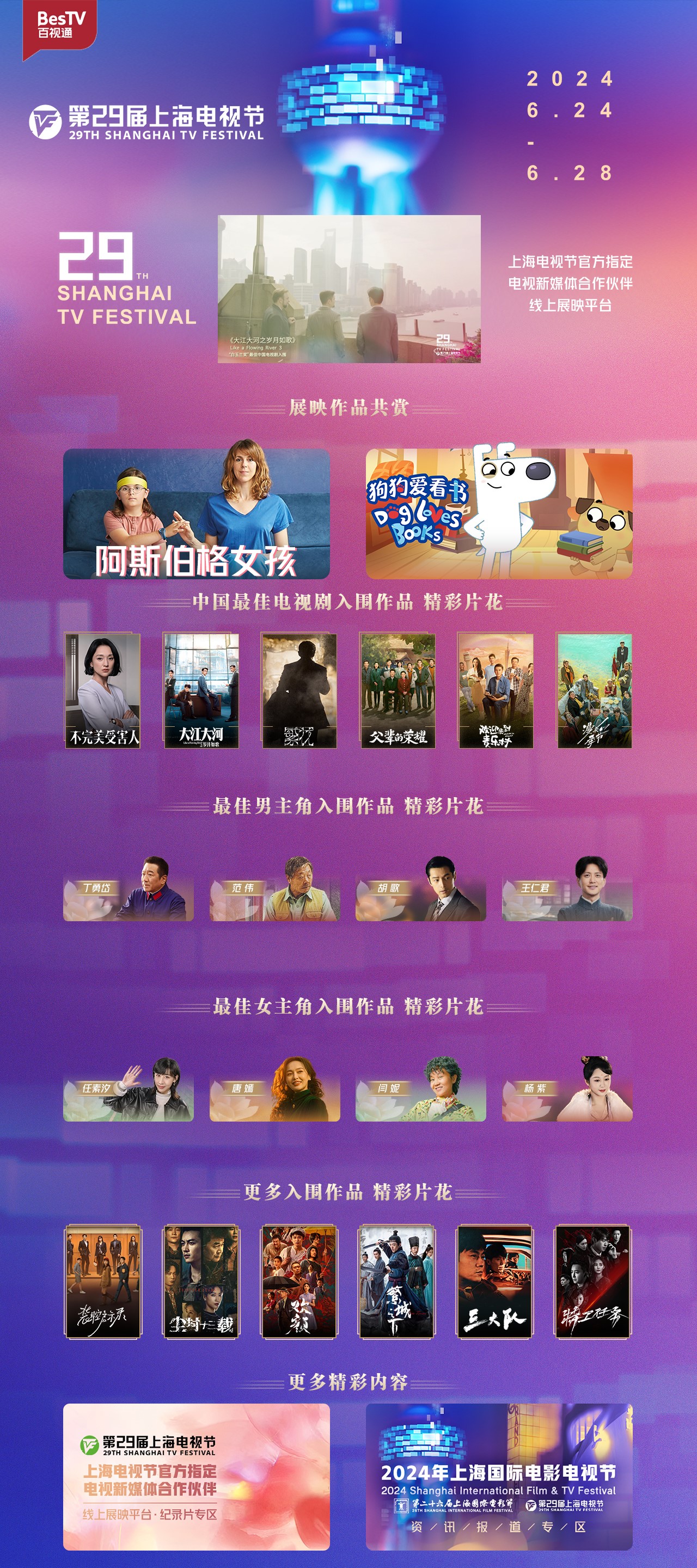 才饮金爵酒,又逢玉兰开。第二十九届上海电视节期间,东方明珠新媒体旗下百视通作为电视节官方指定电视新媒体合作伙伴·线上展映平台,在IPTV、互联网电视、有线电视平台全程直播第二十九届上海电视节“白玉兰绽放”红毯仪式及颁奖典礼,线上展映平台播出包括《阿斯伯格女孩》《梵高:大师之路》《猞猁守护者》三部入围佳作在内的十部海内外优秀影视作品。线下,百视通举办《梵高:大师之路》惠民无障碍融合专场导赏活动,邀请听障群体参与这个光影的节日,感受城市的温度。