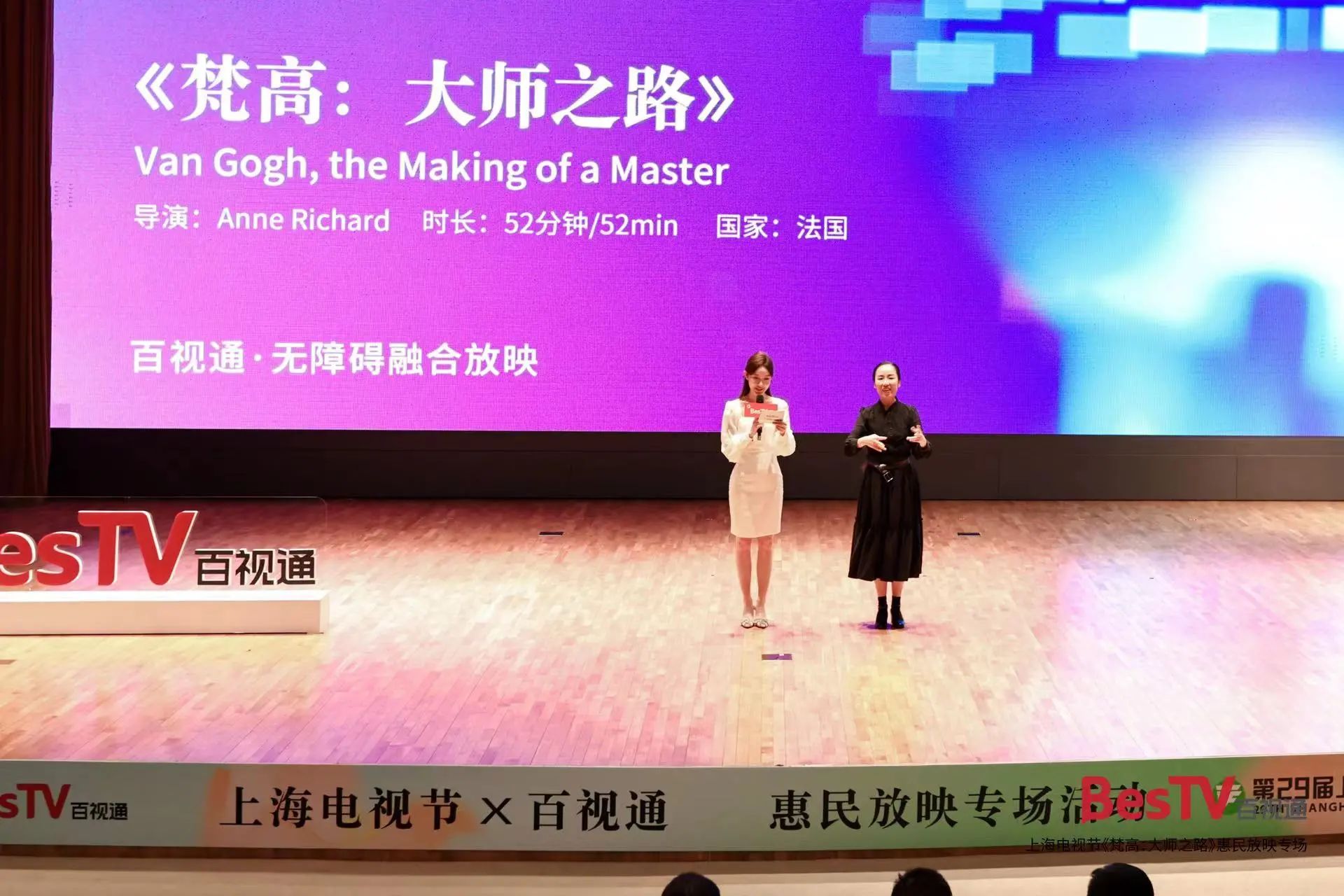 6月26日,由百视通和上海电视节联合举办的线下惠民放映活动在中华艺术宫艺术剧场举行,展映影片为《梵高:大师之路》这一入围影片。在映后导赏环节,本片导演Anne Richard亲临现场,与纪录片博主张新伟对谈,一起走入“大师之路”背后的故事。
