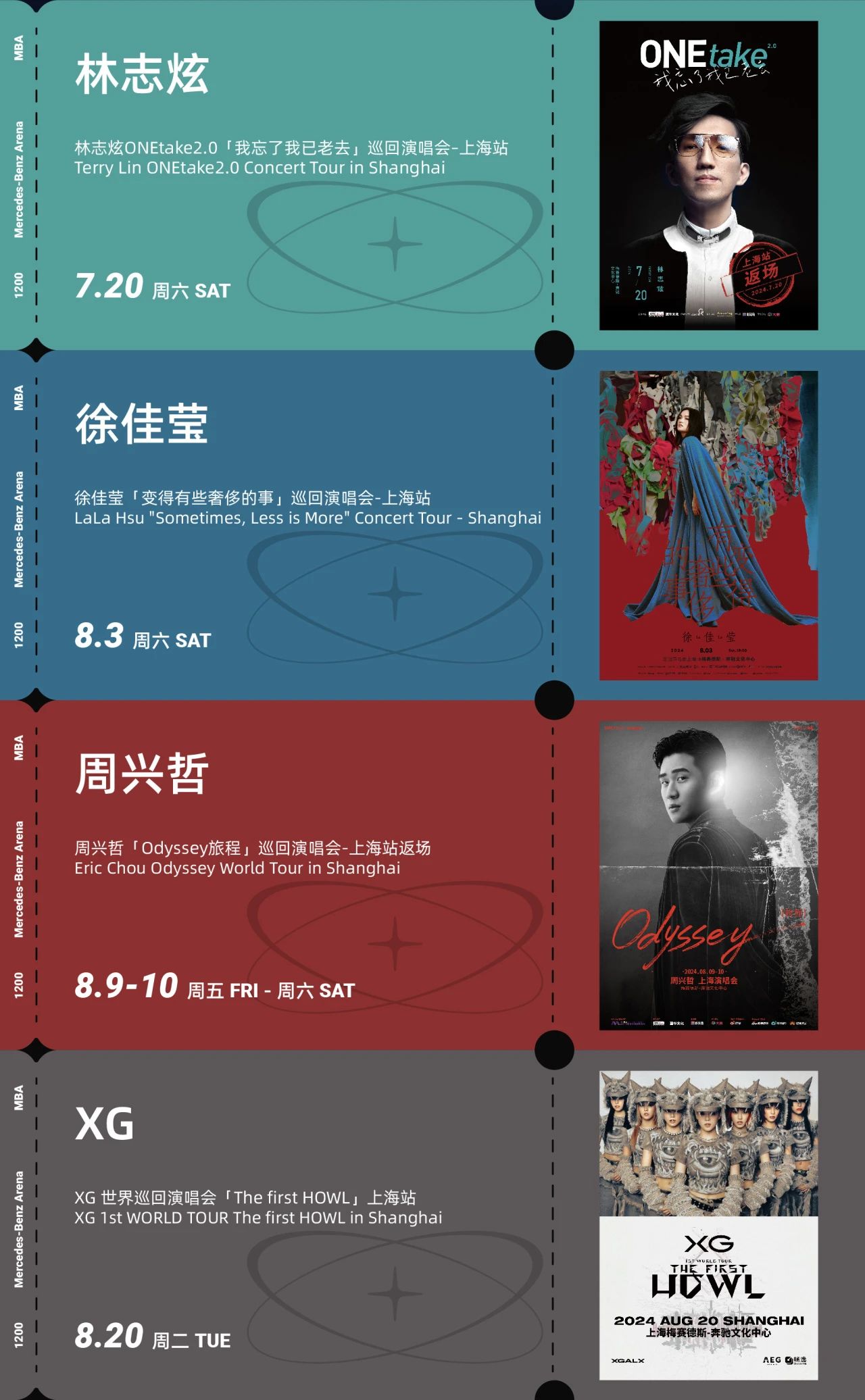 2024年下半年,梅奔中心将迎来更加繁忙的演出季:林志炫“ONEtake2.0我忘了我已老去”巡回演唱会、徐佳莹“变得有些奢侈的事”巡回演唱会、周兴哲“Odyssey旅程”巡回演唱会、XG世界巡回演唱会“The first HOWL”等多场全球顶级演出将轮番上演。