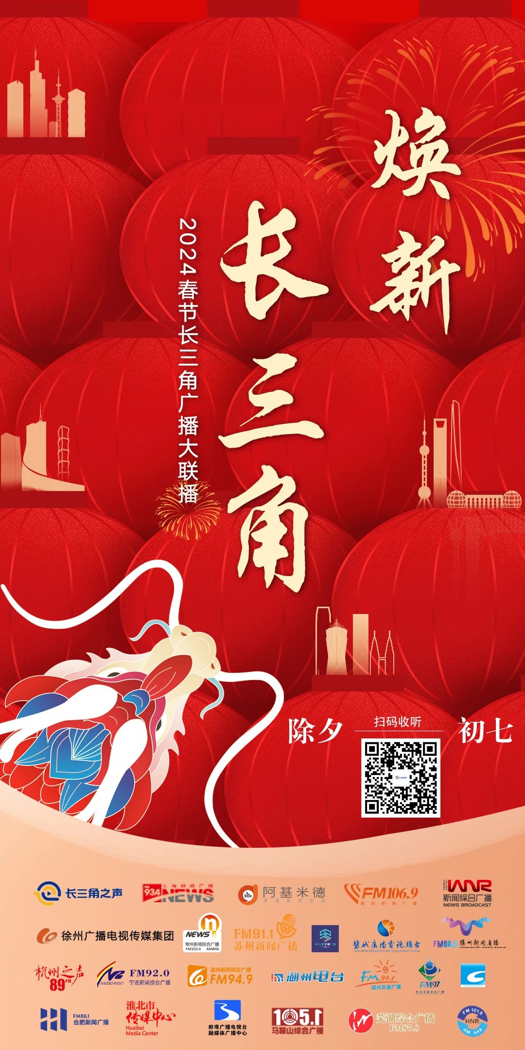 在2024年新春佳节到来之际,东方广播中心长三角之声牵头,联合南京、杭州、合肥、苏州等22家城市广播,共同推出2024春节特别节目《焕新长三角》。节目集中展现长三角城市文旅发展新趋势、新特色、新亮点,助力长三角打造更具国际辨识度的城市群IP。