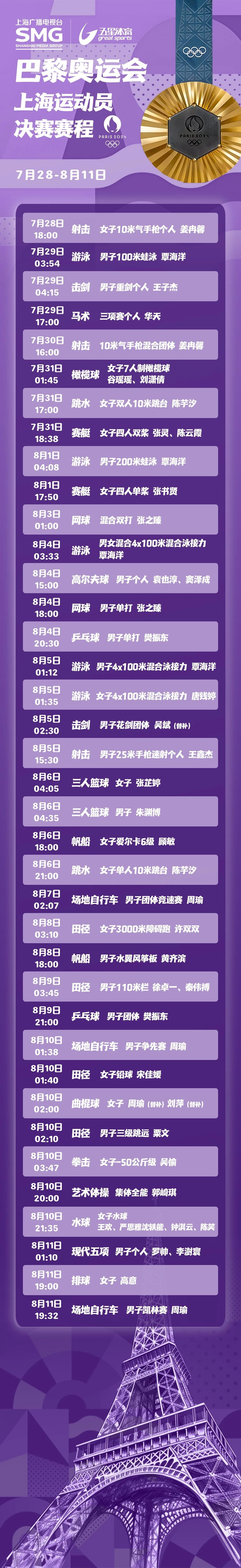快收藏最新SMG五星体育频道奥运观赛指南!