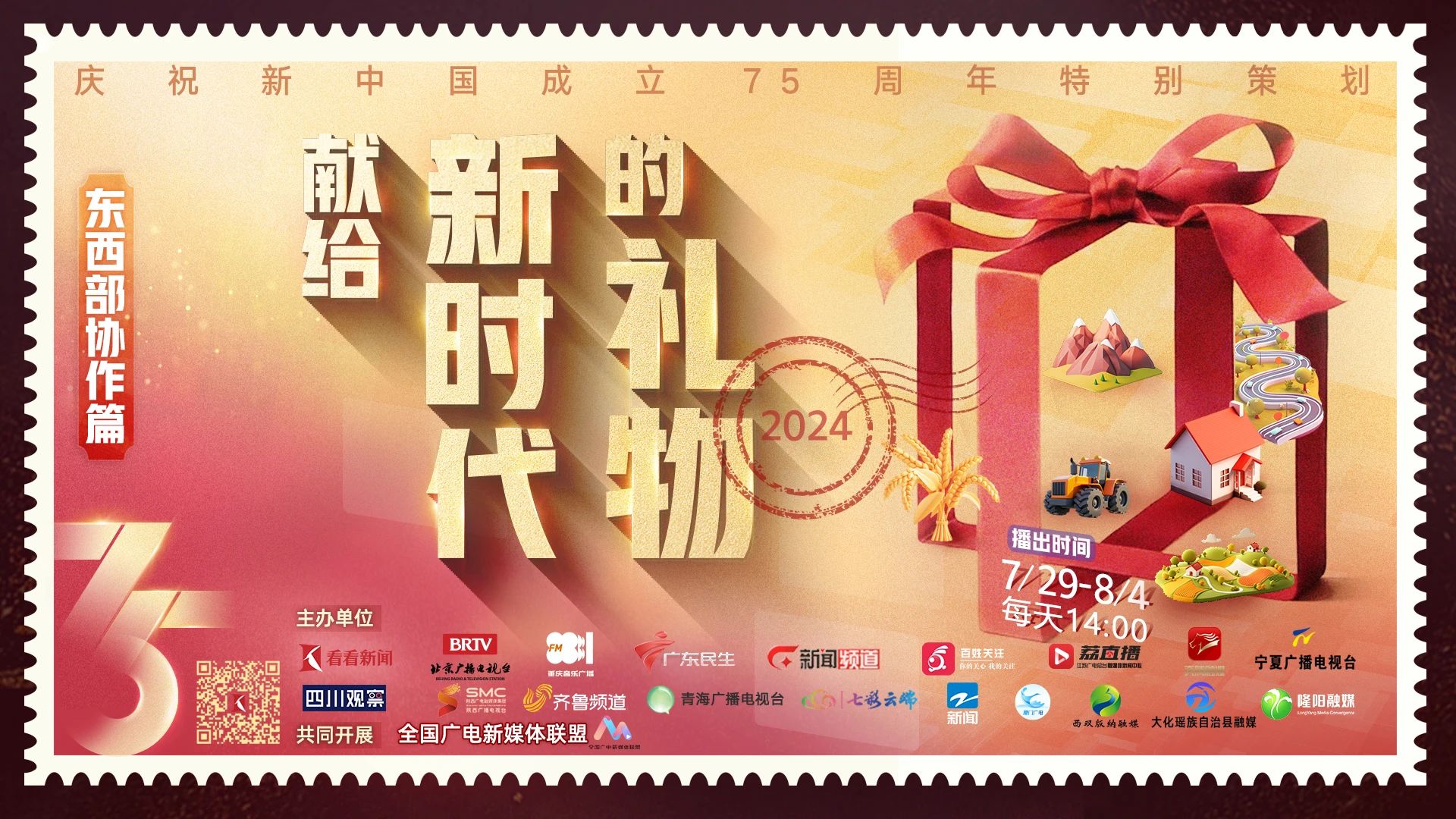 在学习贯彻党的二十届三中全会精神之际,由国家广播电视总局宣传司指导,上海广播电视台融媒体中心牵头,联合北京、内蒙古、江苏、浙江、山东、广东、广西、重庆、四川、贵州、云南、陕西、青海、宁夏、厦门等二十家全国广电媒体共同制作,全国广电新媒体联盟共同开展的庆祝新中国成立75周年特别策划《献给新时代的礼物》“东西部协作篇”今日启动。