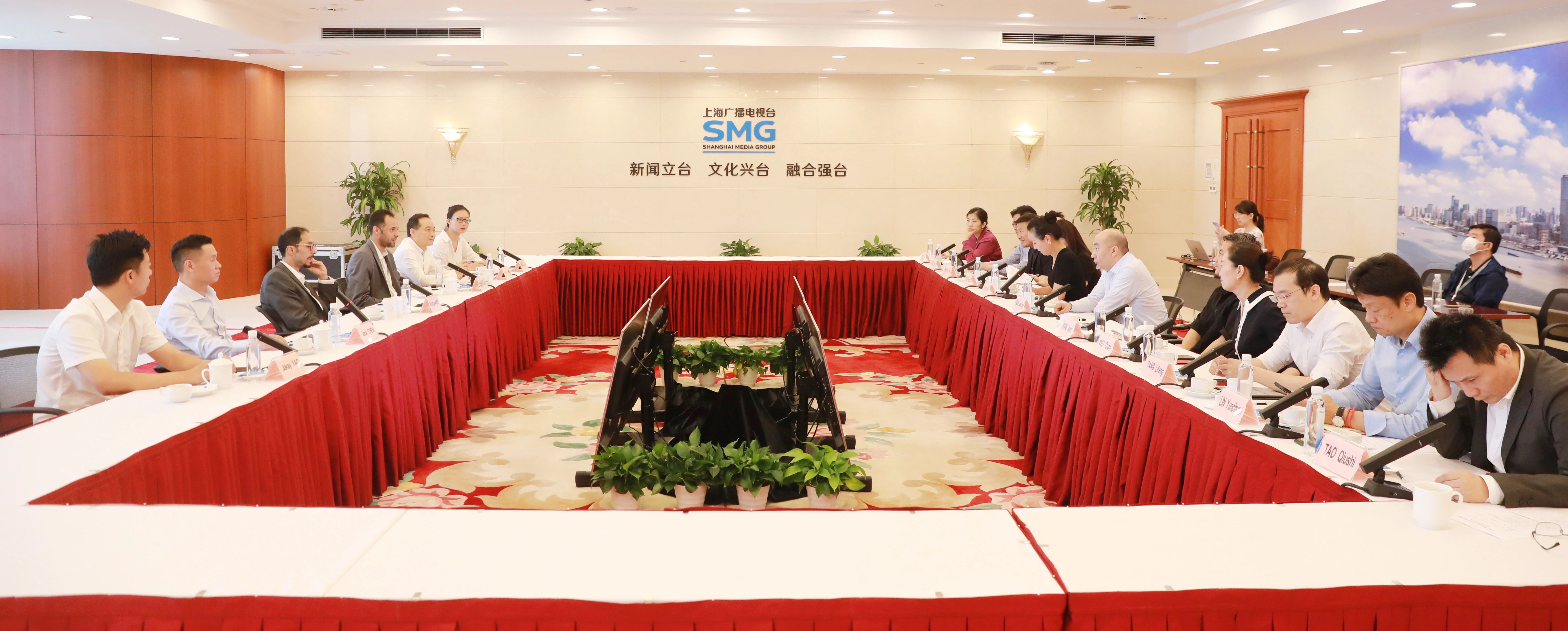 国家广电总局、商务部、上海市广电局、台集团相关部门负责同志参加会见和座谈交流。