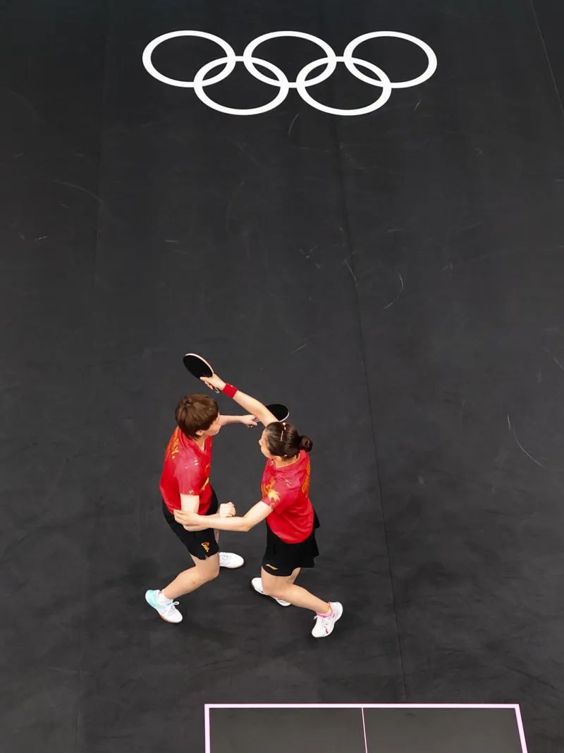 8月10日,中国组合陈梦(右)/王曼昱在比赛胜利后庆祝。(图源:新华社)