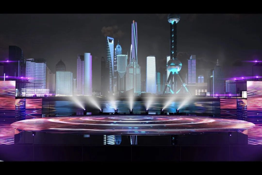 为凸显主舞台与浦江夜景交相辉映的效果,广电制作调整灯光颜色、亮度和闪烁频率,营造出流动的水滴和波光粼粼的舞台效果。整体灯光设计选择主光与副光法,在电视转播画面中,“点”“线”“面”元素与场景谐统一,打造不一样的多彩城市舞台。