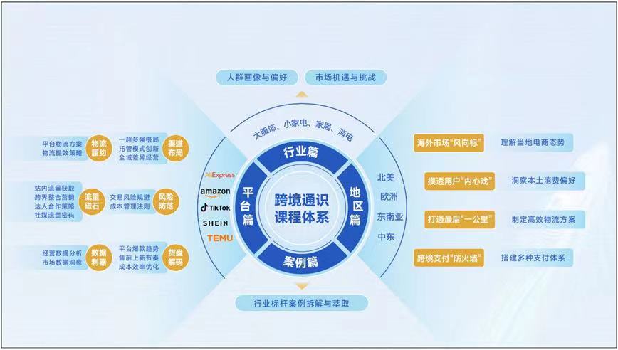 跨境新商通识精要是一堂面向新手跨境商家的一站式课程体系,通过对五大跨境电商平台(亚马逊、速卖通、SHEIN、TikTok Shop和Temu)以及四大海外市场(北美、欧洲、东南亚和中东)的全景式分析,为大服饰、消费电子、家居百货等主流跨境行业,提供定制化出海解决方案,并联合众多行业专家及有经验的操盘手,共同搭建起集战略规划、运营管理、实操落地于一体的立体知识架构。(课程详情可从“一财商学”公众号了解)