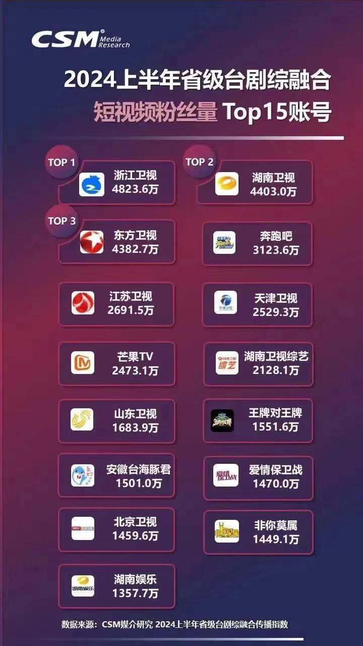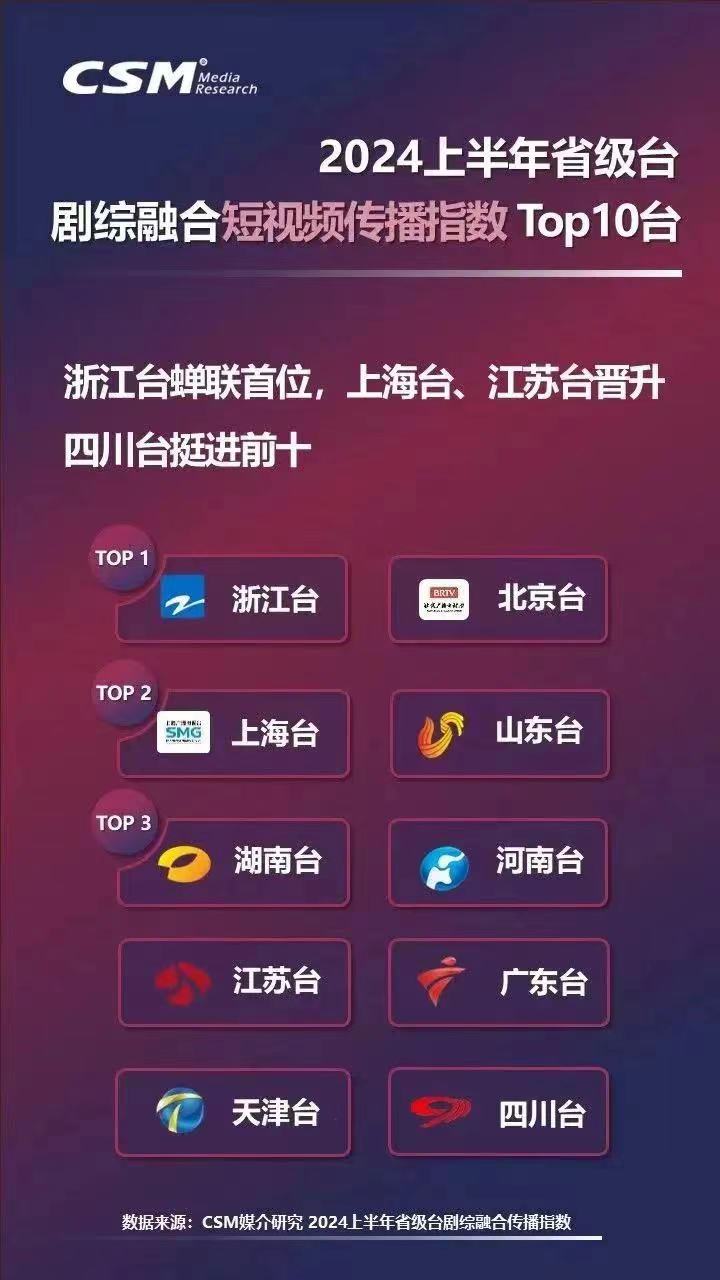 2024上半年,据CSM媒介研究数据显示,省级台剧综融合传播整体水平保持提升。其中,东方卫视作为剧综融合传播的头部梯队,以特色化内容构筑传播优势,获得省级台剧综融合短视频发布量第一;短视频传播指数、微信传播指数第二等亮眼成绩。
