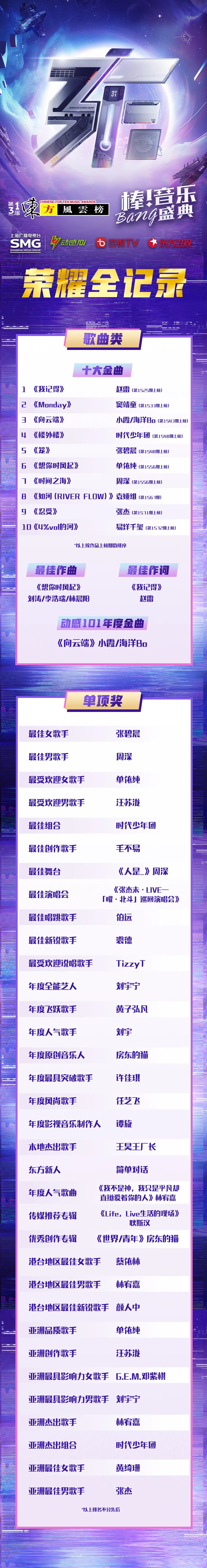 第31届《东方风云榜》荣耀归属