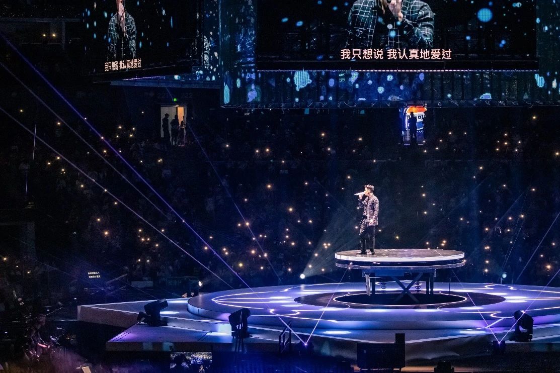 本次周兴哲演唱会以四面台的形式升级回归,舞台设计无任何立柱和遮挡,使观众从各个角度都能近距离欣赏演出。四面台的舞台布局也增强了观众的参与感和沉浸感,29块环绕式分布的大屏更是将舞台的每个细节完美呈现,使观众更轻松沉浸在演唱会的氛围中。