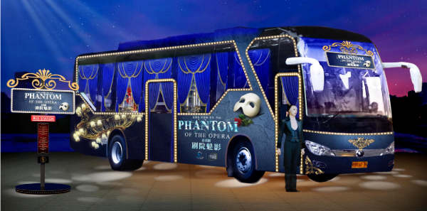 由上海广播电视台引进的经典音乐剧超级IP《剧院魅影》,定制了全球首辆光影奇妙巴士,打造《剧院魅影》巴士体验场景的全球首发。