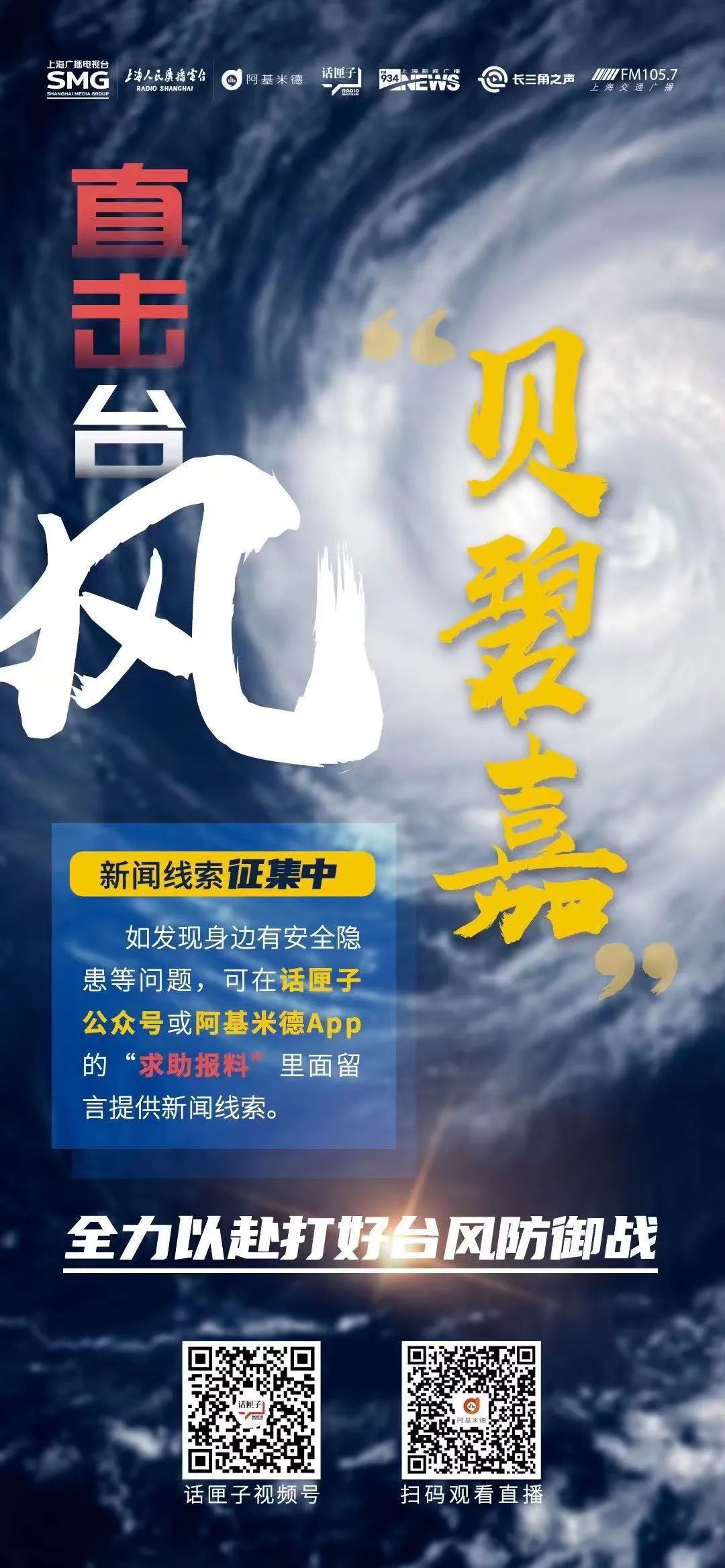 上海广播电视台主要频率频道均打通版面,打破原有编排,与新媒体小屏融合联动,推出大体量的迎战台风直播特别报道。