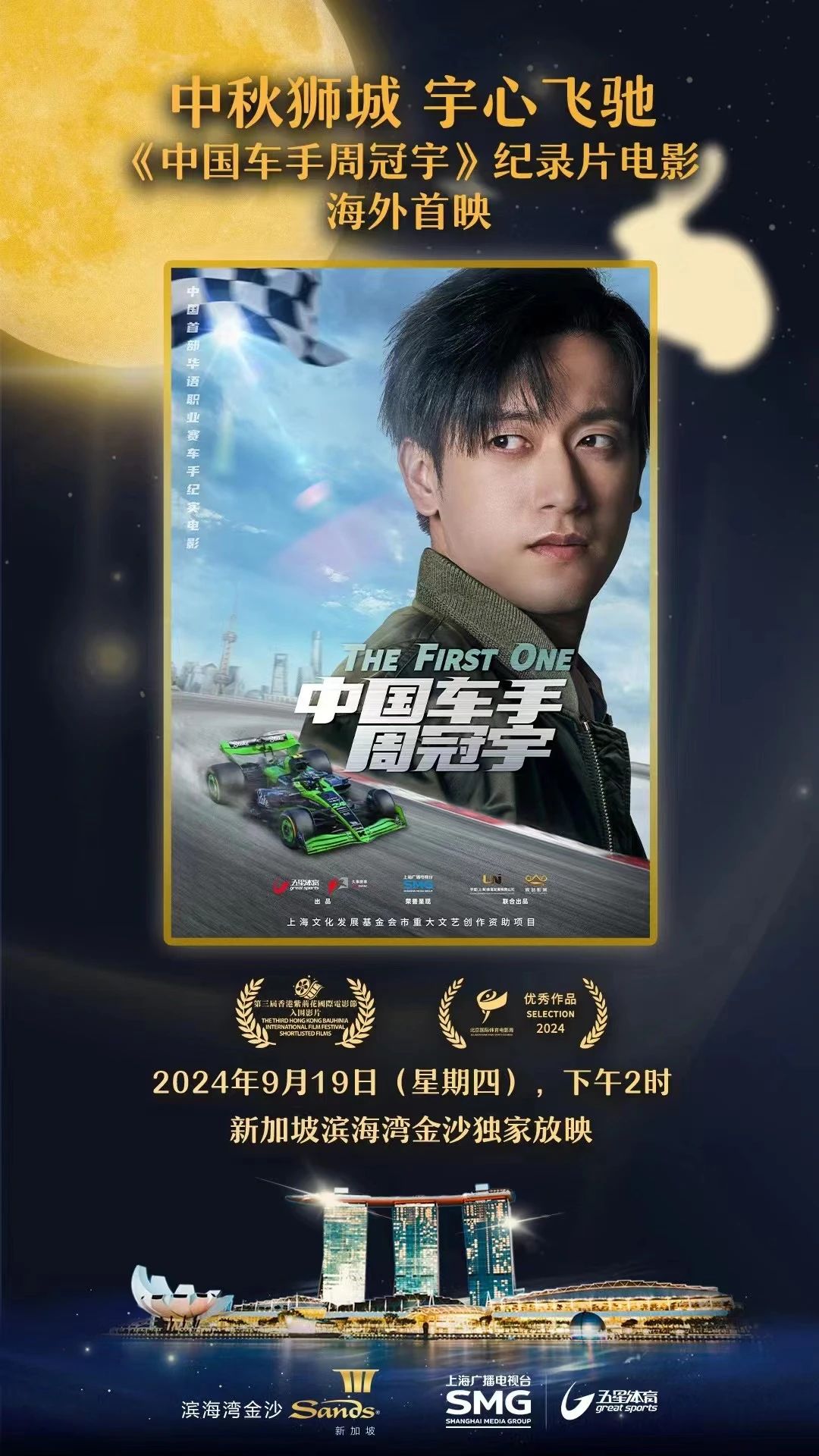 9月19日,由上海广播电视台荣誉呈现、五星体育传媒有限公司第一出品的纪录电影《中国车手周冠宇》,在新加坡地标滨海湾金沙举行独家海外限时放映,吸引1000余名观众到场。