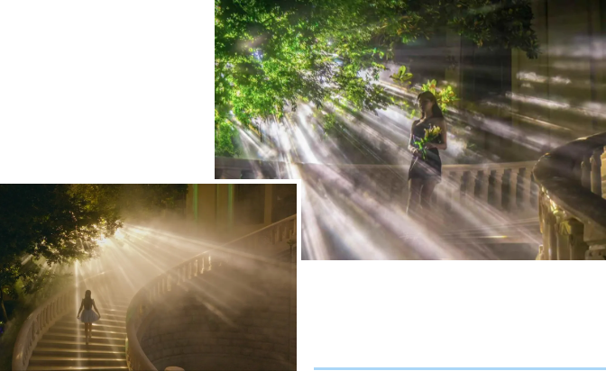 “创新将多种舞台灯光布景装置运用到户外实地。从光影语汇上注重彰显氛围感,运用雾森系统作为光的载体。围绕‘梦幻、科技、艺术、互动’等属性,结合周围环境巧妙布局,将光的二维化为三维,让光线的穿透性更强,着重打造夕阳余晖下的丁达尔秘境。”舞台所副所长、“上海工匠”谢渝熙这样总结创制要义。
