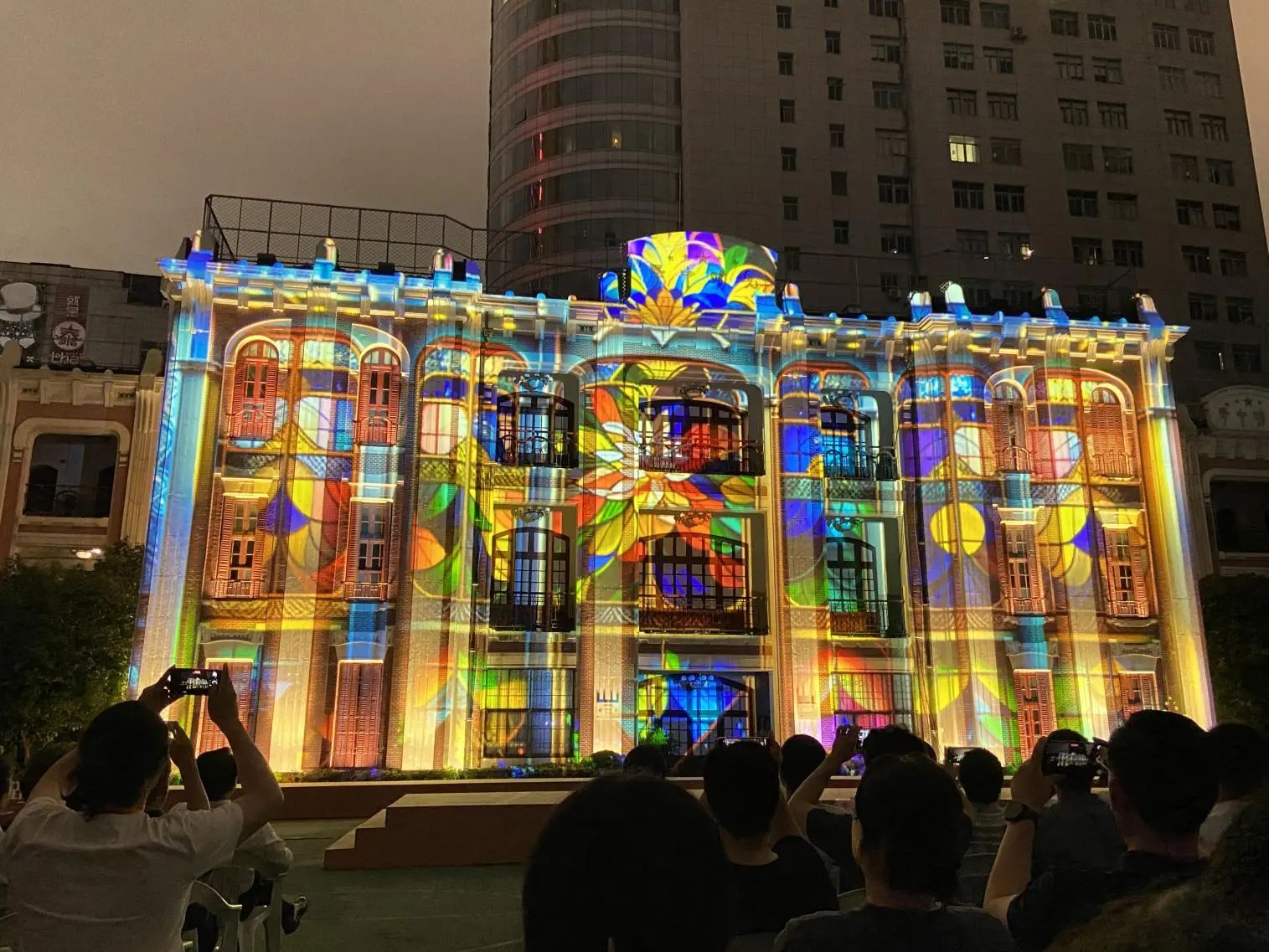 舞台所主创团队积极助力黄浦区推出一系列外滩、南京路步行街等老上海经典地标的光影艺术视觉盛宴,让上海久负盛名的天际线更具“亮”点。