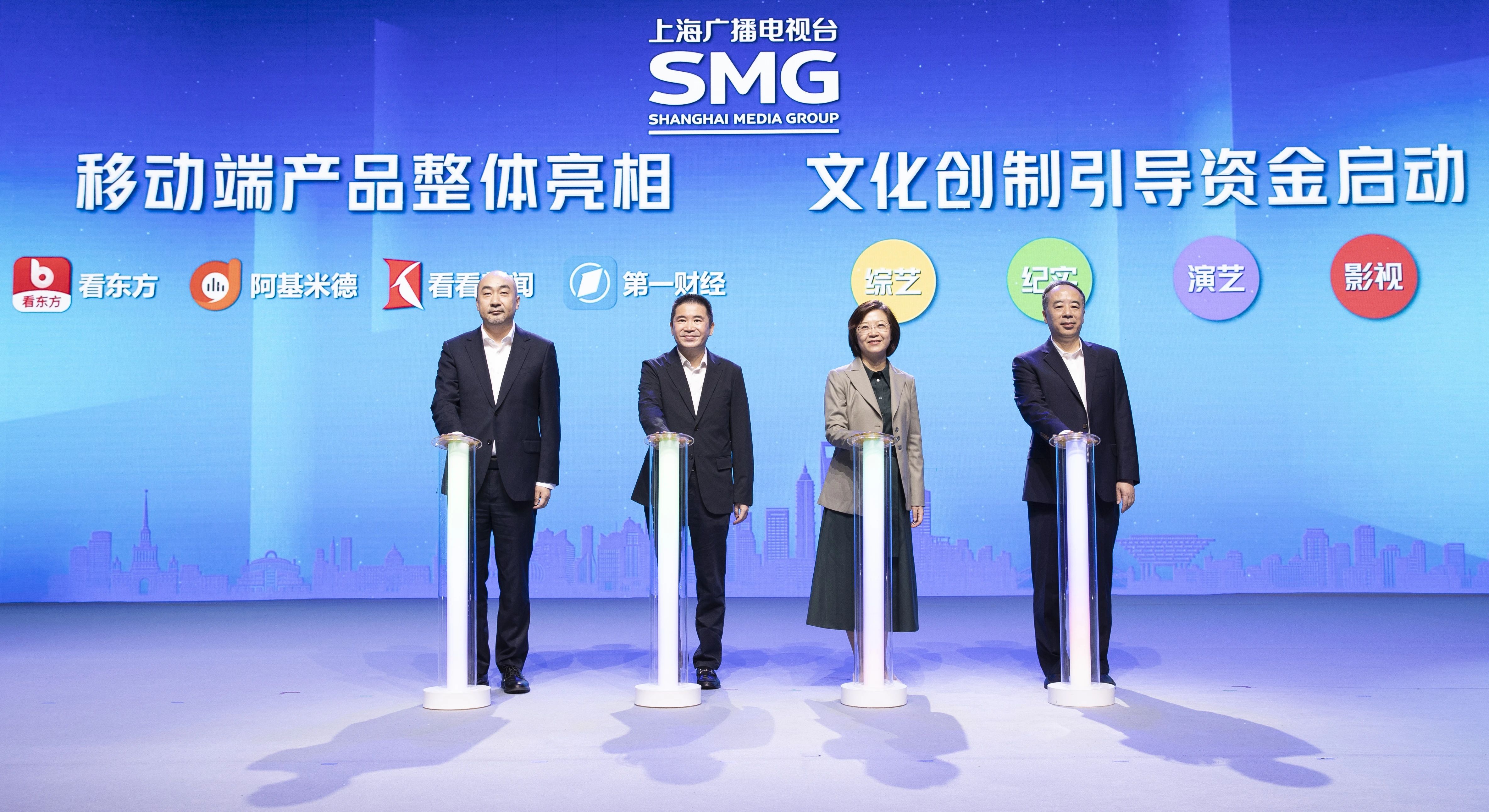 重点移动端产品“看东方、看看新闻、阿基米德、第一财经”整体亮相,文化创制引导专项资金启动,市委网信办主任徐炯,市委宣传部副部长马笑虹,市委宣传部副部长、市国资委副主任黄斌兵,上海广播电视台(集团)党委副书记、副台长、总裁宋炯明共同启动。