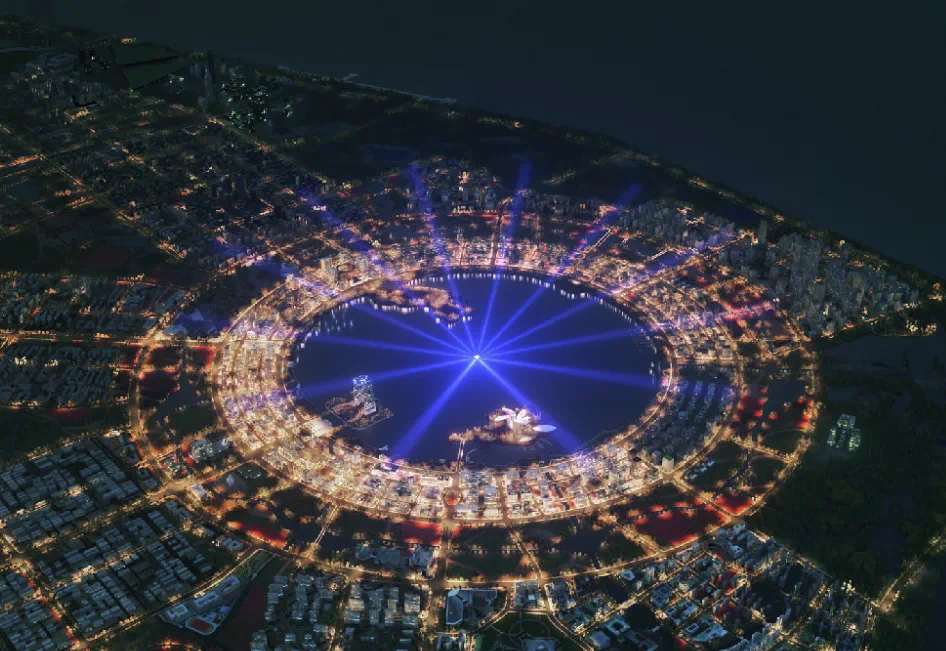 幻维数码团队从展现《临港时刻》角度切入,围绕“一湖四轴”及周边景观灯光建设整体效果,凸显临港作为“年轻的城,年轻人的城”,此刻正为你点亮,形成符合网络及社交媒体二次传播特点的光影节爆款视频。夜幕降临,湖畔灯火辉煌,光影与湖水交相辉映,营造出绚丽多彩的临港夜景。