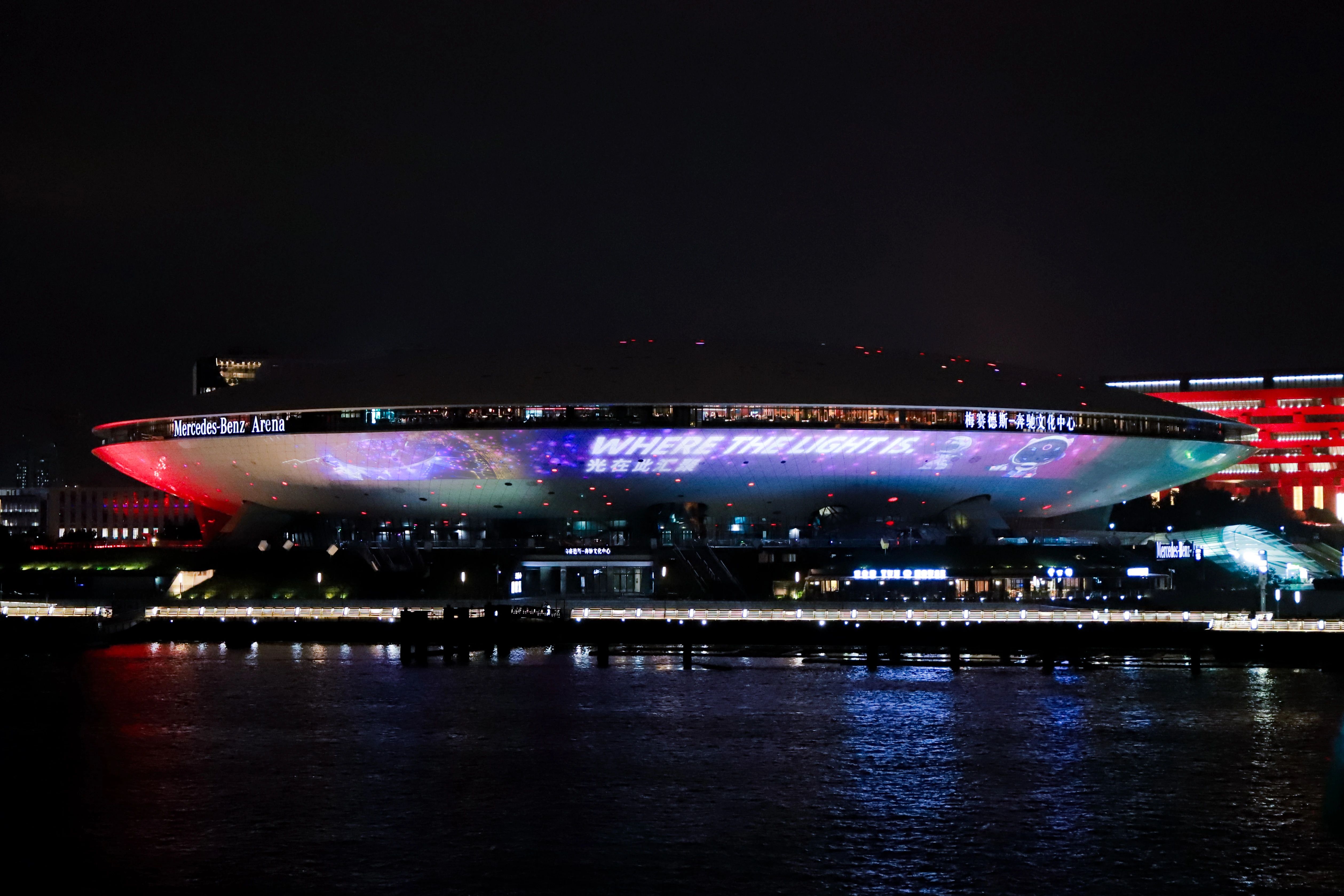 2024年首届上海国际光影节期间,梅奔中心作为浦东分会场之一,于9月21日至10月18日期间首次在建筑主体上呈现“光在此汇聚”建筑投影秀。