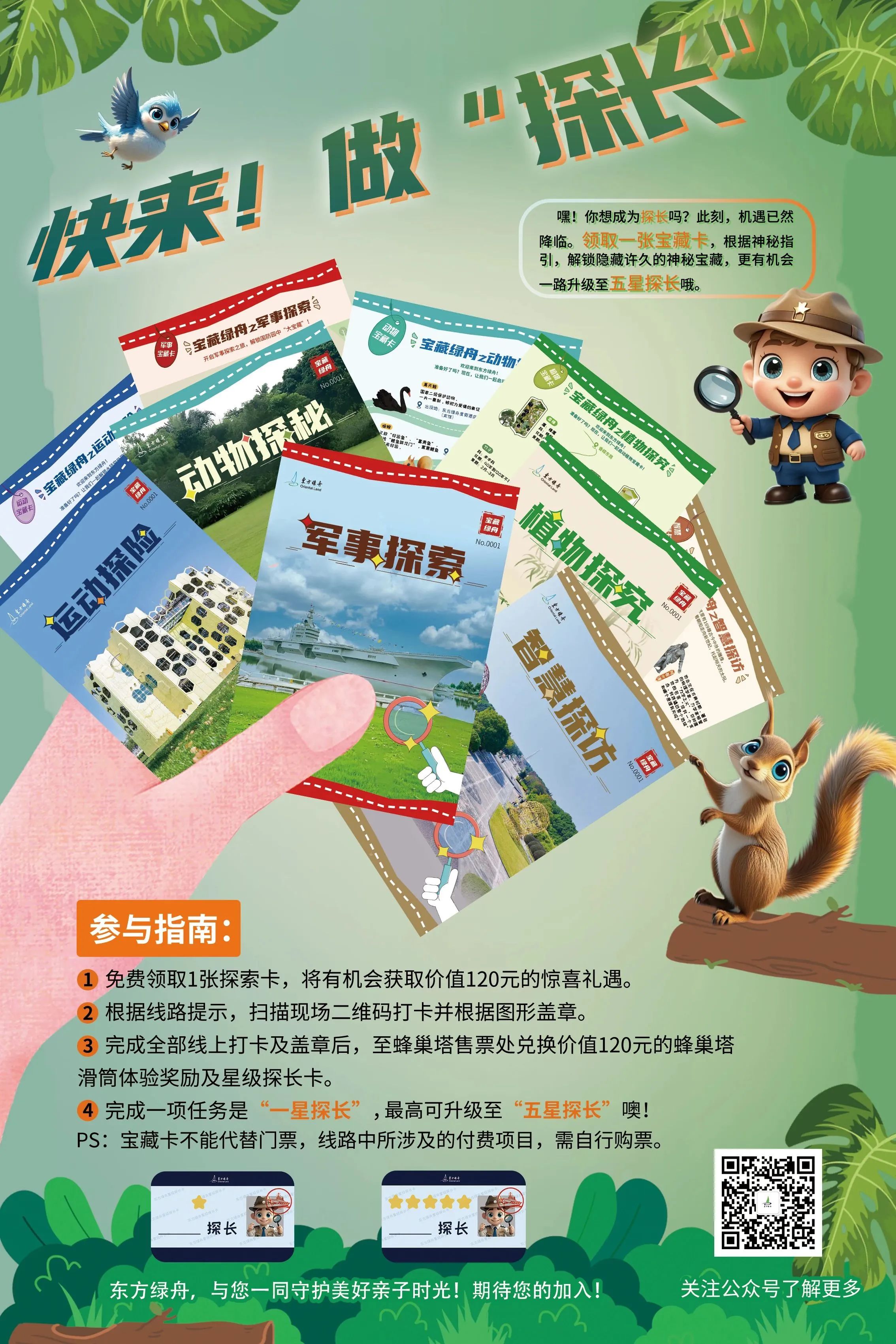 东方绿舟还重磅推出“五星探长”寻宝活动,市民游客可以在军事探索、智慧探访、运动探险、动物探秘、植物探究五大主题线路中,选择一条线路完成全部线上打卡及盖章后,兑换奖励及“星级探长卡”。活动在营造节日“合家欢”氛围的同时,也引导市民游客从不同角度认知东方绿舟。