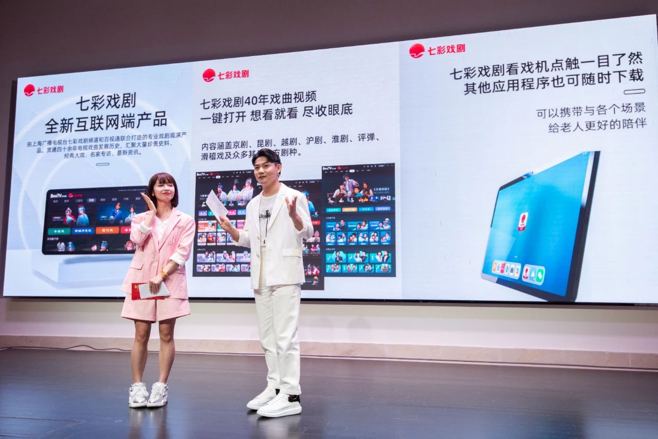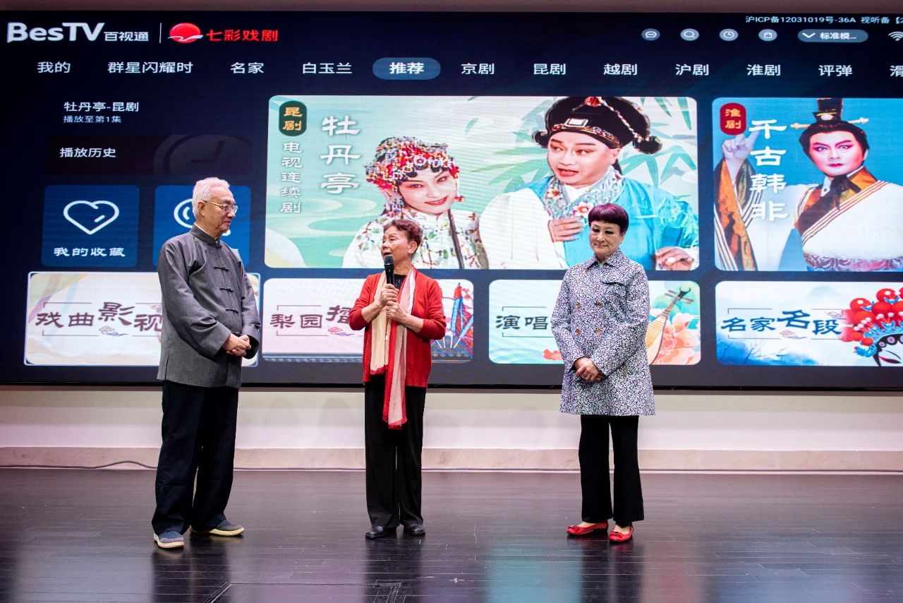 发布会上,上海都市乐聆文化传播有限公司相关负责人详细介绍了产品功能、内容及其优势特色。艺术家代表回顾分享了他们与上海电视戏曲共同走过的难忘岁月,并对最新推出互联网端全场景产品的未来寄予厚望。青年演员代表则用“Z世代”的语言,向现场嘉宾介绍了硬件产品定制平板电脑的使用方式。上海市剧协、上海市曲协、江苏省曲协、上海戏曲艺术中心及下辖各单位代表、老中青三代艺术家代表等参加活动。