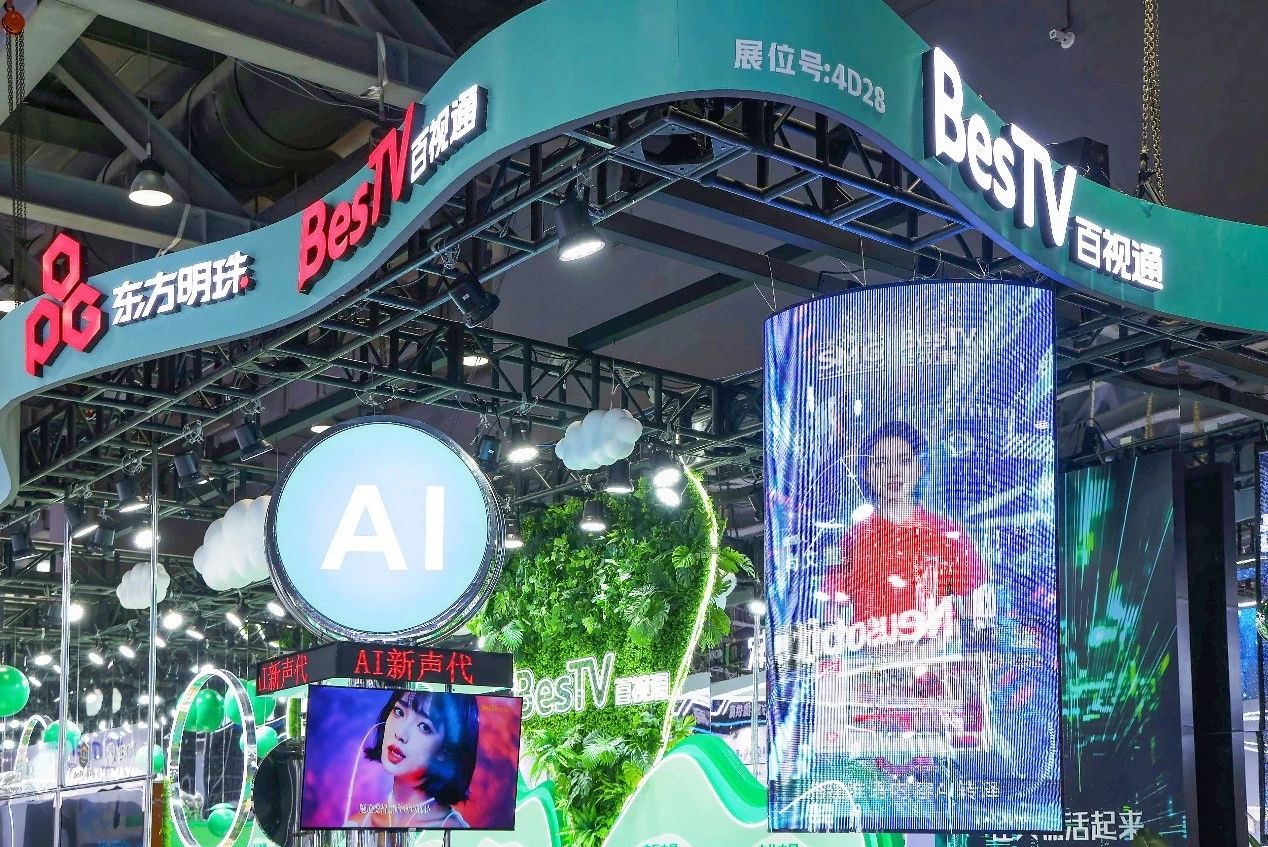 东方明珠旗下百视通坚持在上海广播电视台“SMG in AI”的主攻方向上持续发力,以AI“新质力”赋能产业,汇集“可视化”AI创新、“云系列”应用产品、泛屏终端业务与跨界融合的“无 界”视听项目,全面展示AI+时代的千姿百态。
