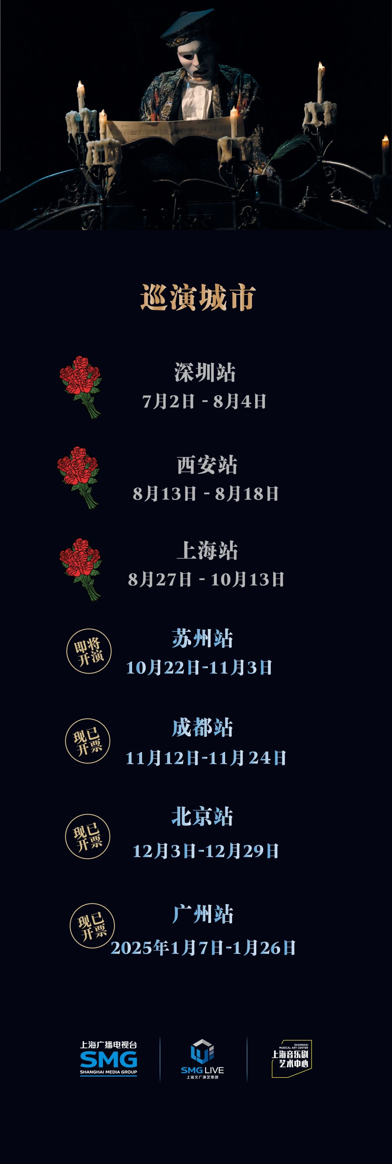 告别上海之后,《剧院魅影》下一站将转场苏州,为观众带去旷世经典的现场震撼。与此同时,由上海广播电视台打造的驻演品牌“SEE YOU IN SHANGHAI上海见!”首批项目进入倒计时。