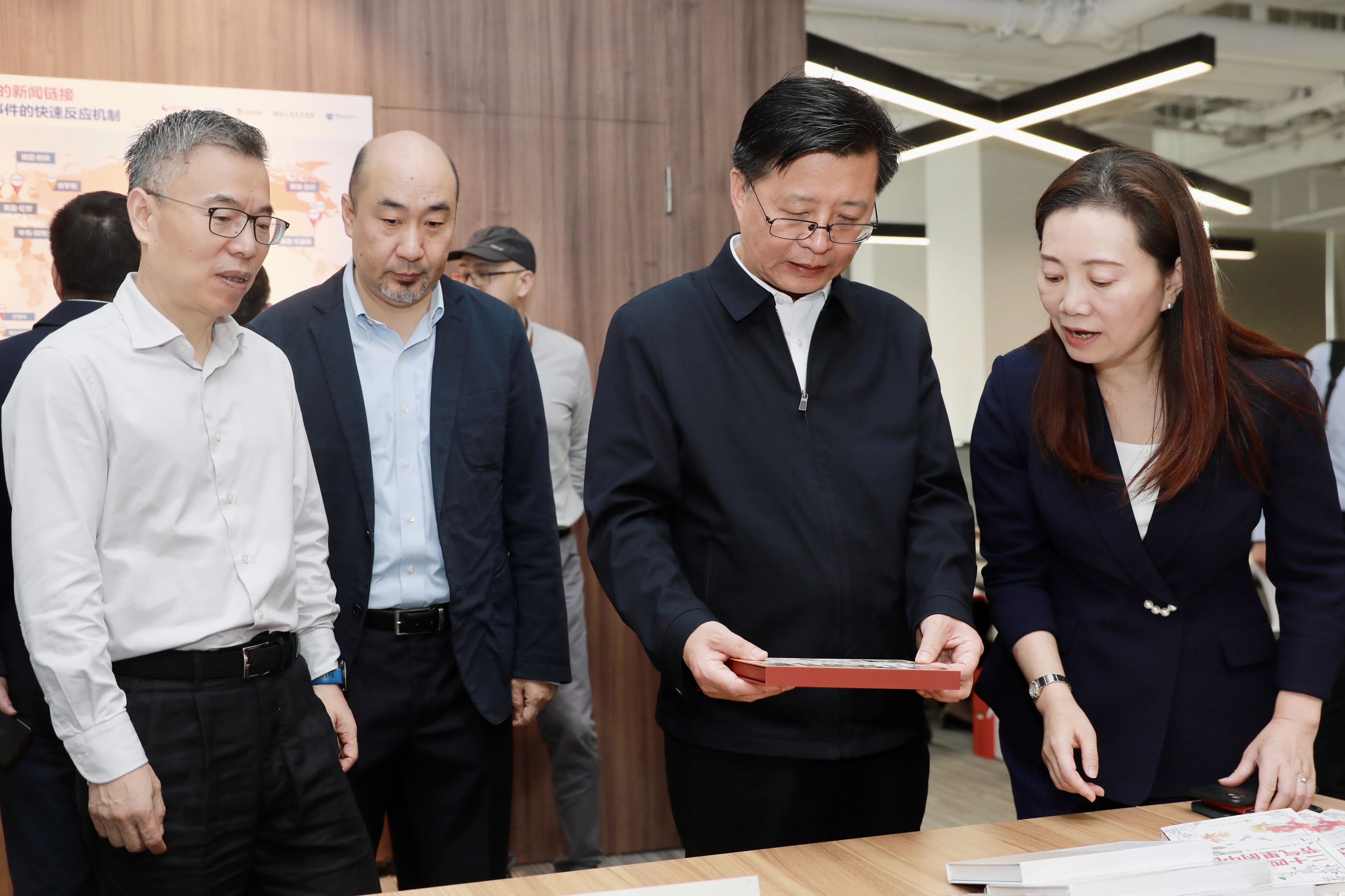 国家广电总局传媒机构管理司司长袁同楠,广播影视发展研究中心党委书记、主任祝燕南,上海广播电视台(集团)党委副书记、副台长、总裁宋炯明,上海市广播电视局副局长罗毅,广播电视和网络视听节目管理处处长、二级巡视员游海洋,台(集团)领导尹欣、刘晓峰、王磊卿、陈思劼、吴茜以及相关部门、下属单位主要负责人等参加调研。
