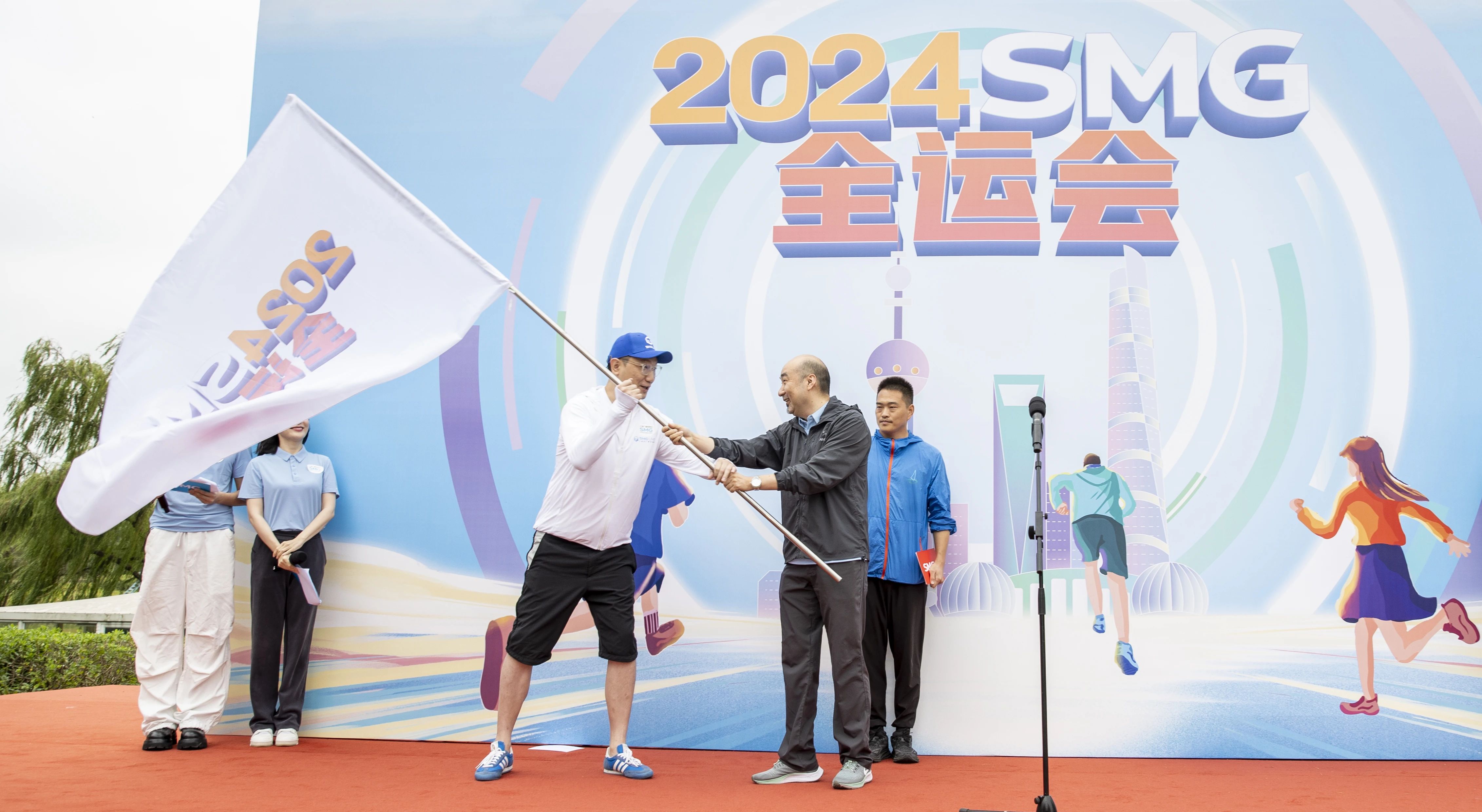 市委宣传部副部长,上海广播电视台(集团)党委书记、台长、总编辑方世忠宣布SMG全运会开幕,上海广播电视台(集团)党委副书记、副台长、总裁宋炯明为运动员授旗。
