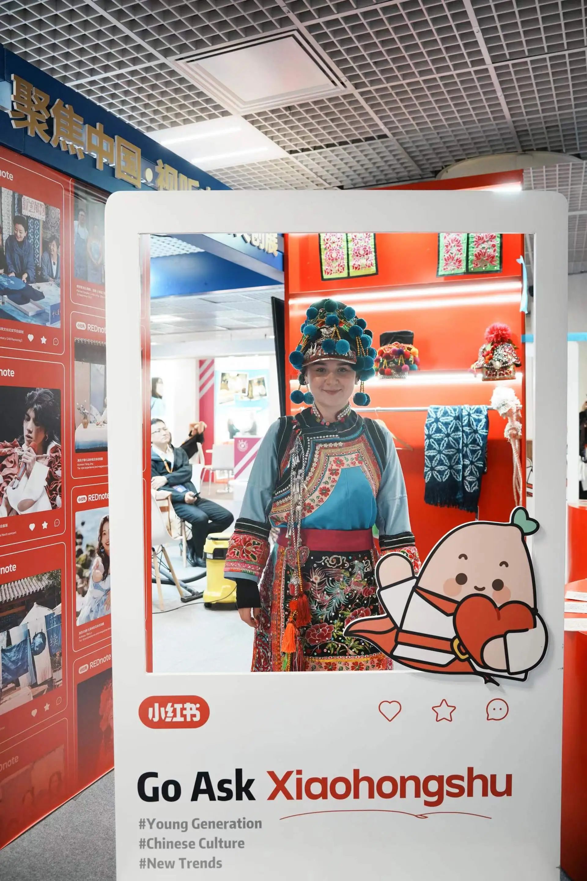 小红书则围绕其助力乡村非遗创新发展的公益项目展开,重点展出来自云南大理的白族扎染、白族甲马、彝族刺绣、鹤庆手工造纸等四项特色非遗相关展品,以纪录片、实物产品、图片展示等方式进行展示与推介,并设置互动体验环节,旨在助力中国特色乡村和特色非遗文化出海。