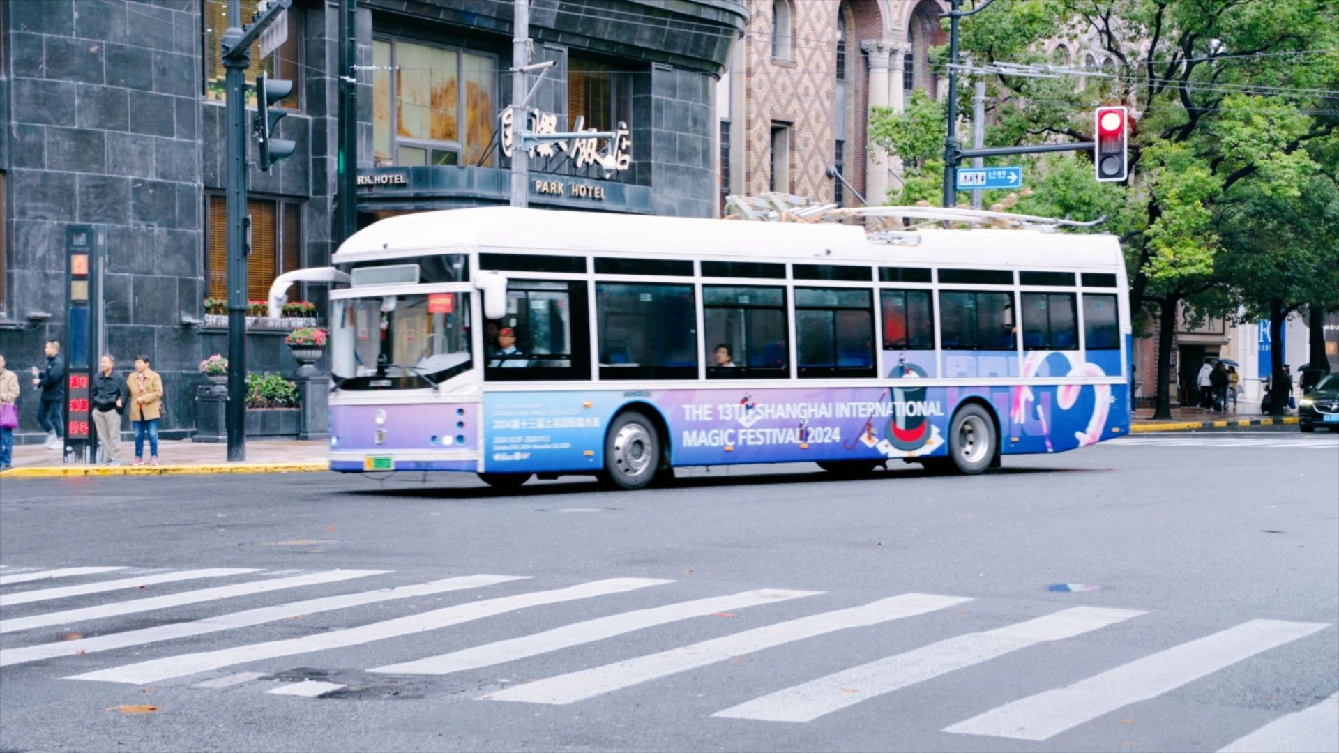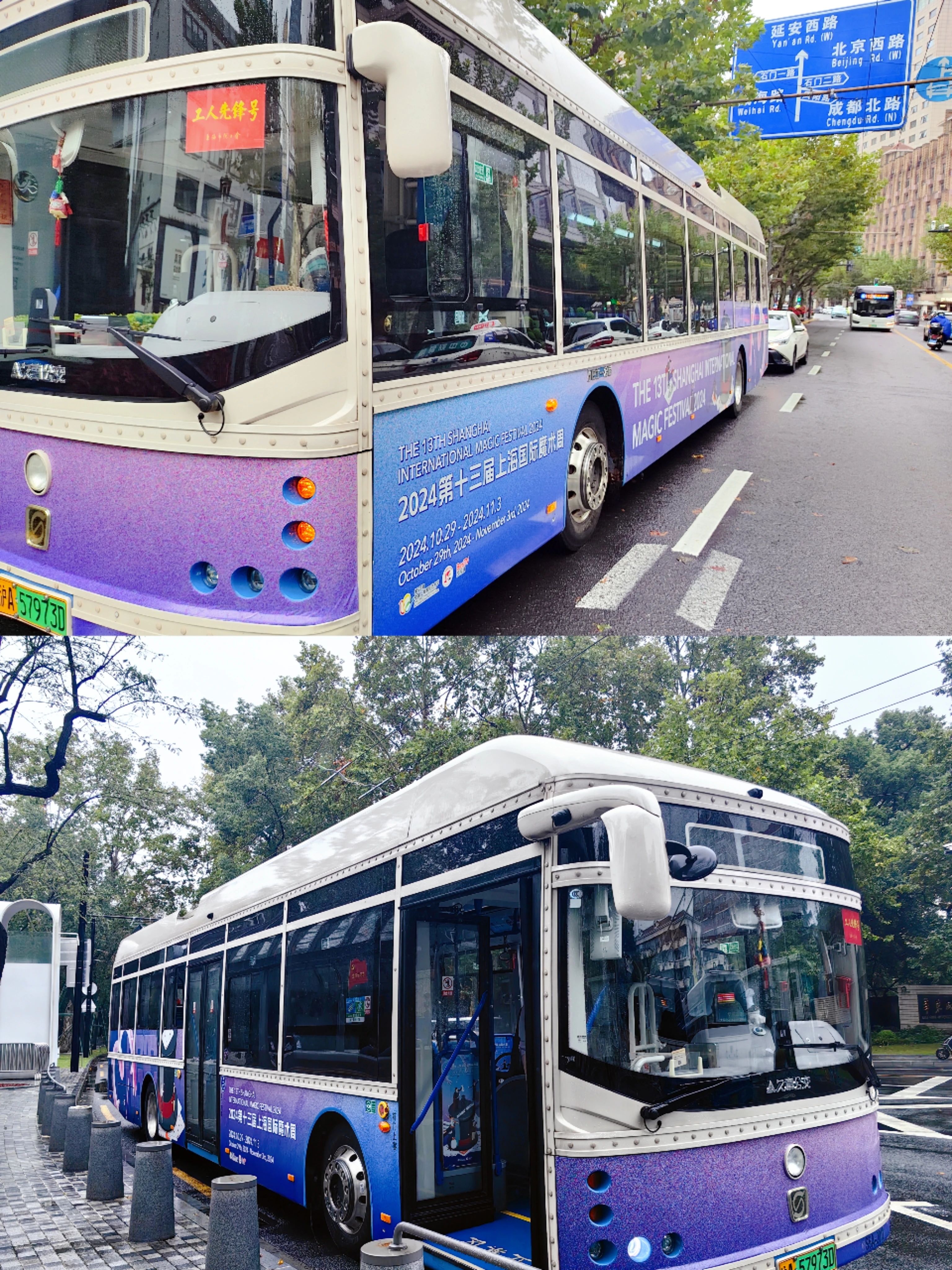 10月27日起,布满魔术元素的20路主题公交车正式开启为期一个月的“魔法之旅”。这辆“魔法巴士”身披2024上海国际魔术周主题海报,穿梭于热闹繁花的上海街头,蓝紫色背景上点缀着魔法师帽、白手套、扑克牌等显著魔术元素,为魅力上海更添一丝魔法气息。