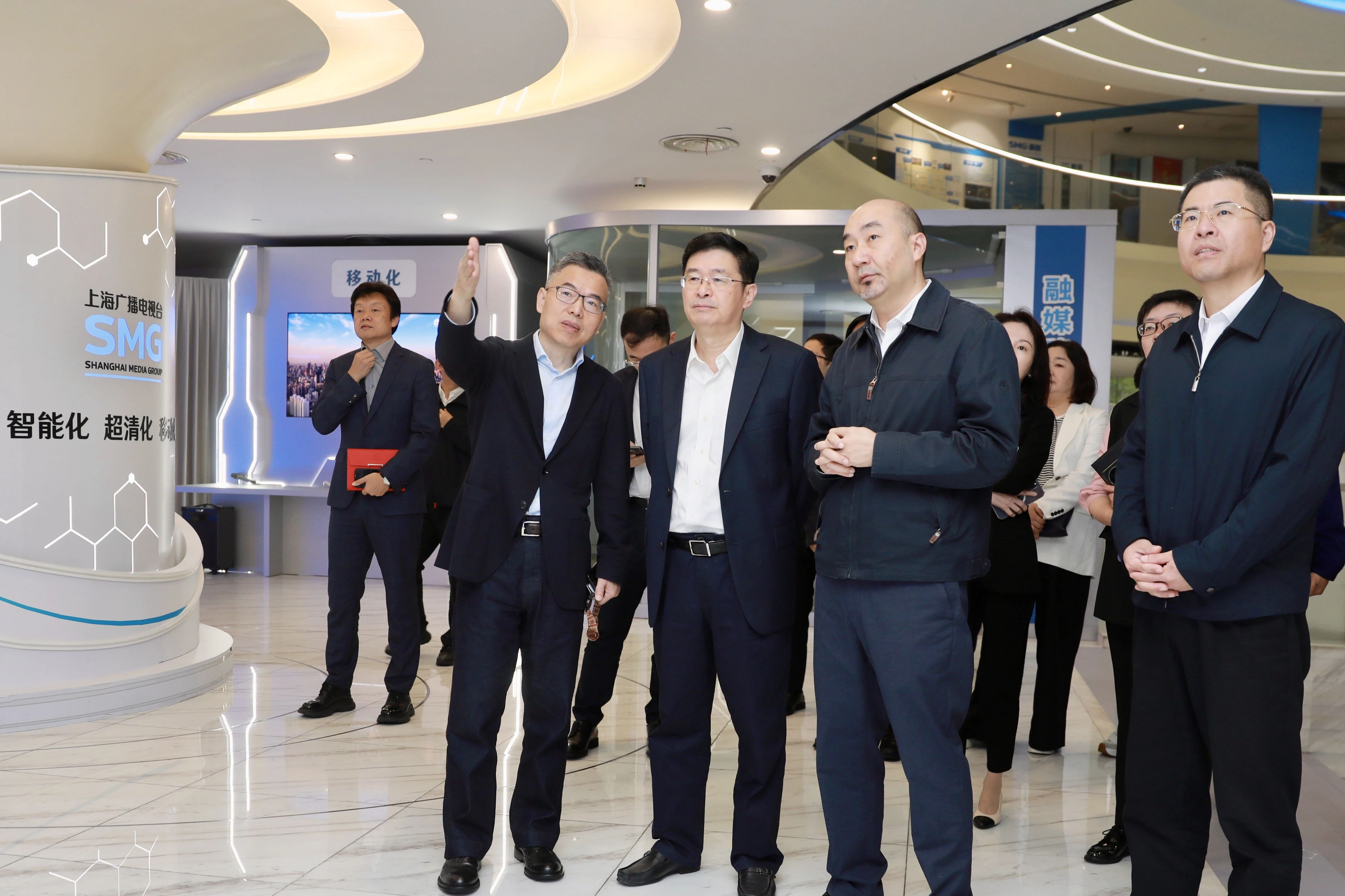 会前,于勇等一行参观了上视大堂新媒体平台展示区和智慧广电展示区。