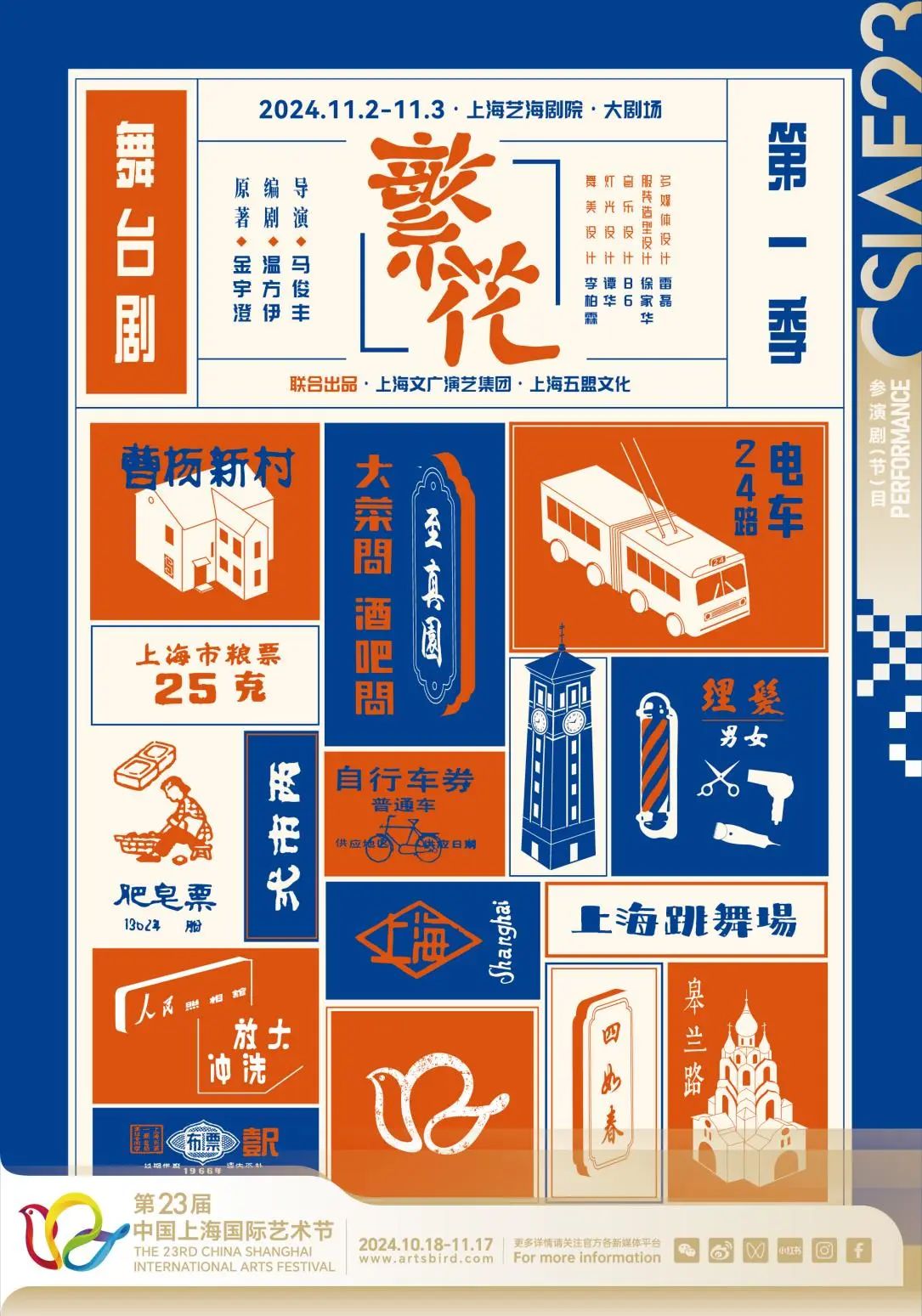 由上海文广演艺集团、上海五盟文化联合出品,舞台剧《繁花》第一季时隔五年,再度参演中国上海国际艺术节,11月2日至3日在上海艺海剧院·大剧场连演四场。