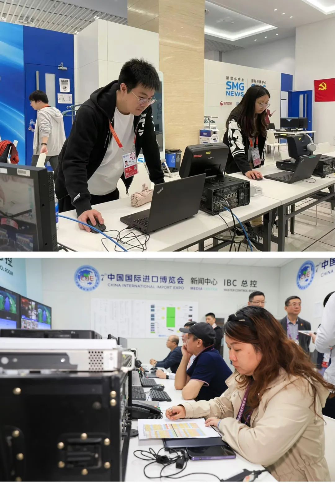 140多位技术人前期已顺利完成融媒体演播室、第一财经演播室、SMG媒体工作间、广播全媒体直播间等共4个前方演播室技术系统建设,为中外媒体提供公共信号分发和媒体信号传输的全流程服务以及部分重要活动现场技术保障。
