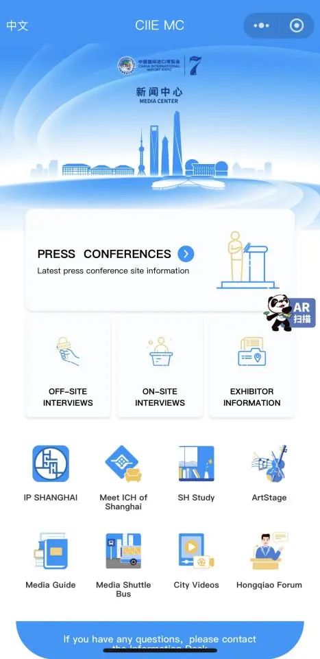 本届进博会新闻中心小程序CIIE MC在原有基础上进行了升级,页面风格全面焕新,用更具科技感的新图标、更简洁的页面布局,提升媒体记者的使用感受。