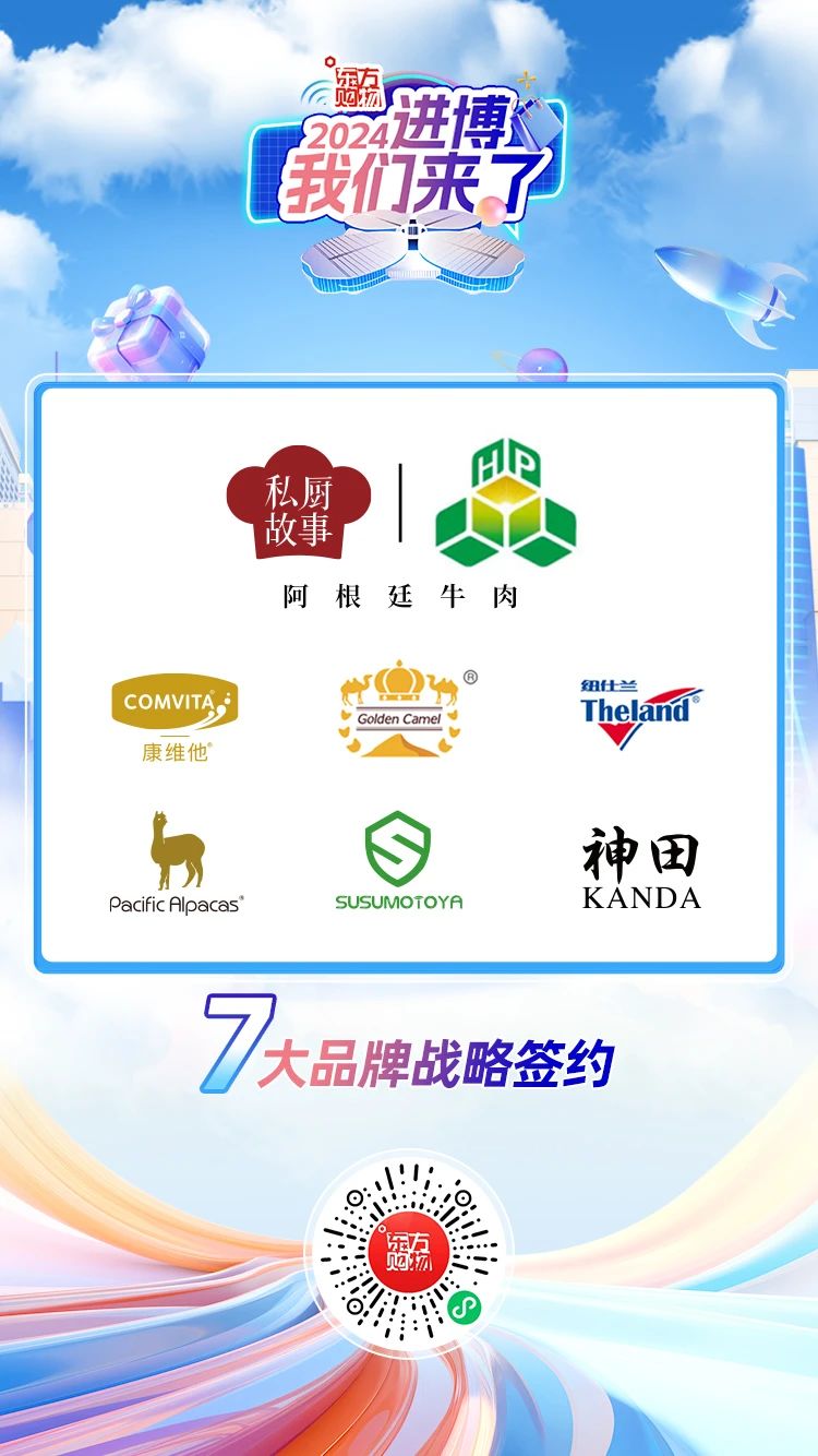 进博会期间,东方购物将与来自新西兰的康维他、纽仕兰、太平洋羊驼家纺,来自日本的协和、神田,来自哈萨克斯坦的金骆驼,以及自有品牌私厨故事等七大品牌签署战略合作协议,共同推动全球优质商品的引进和推广,为消费者带来更多选择和惊喜。