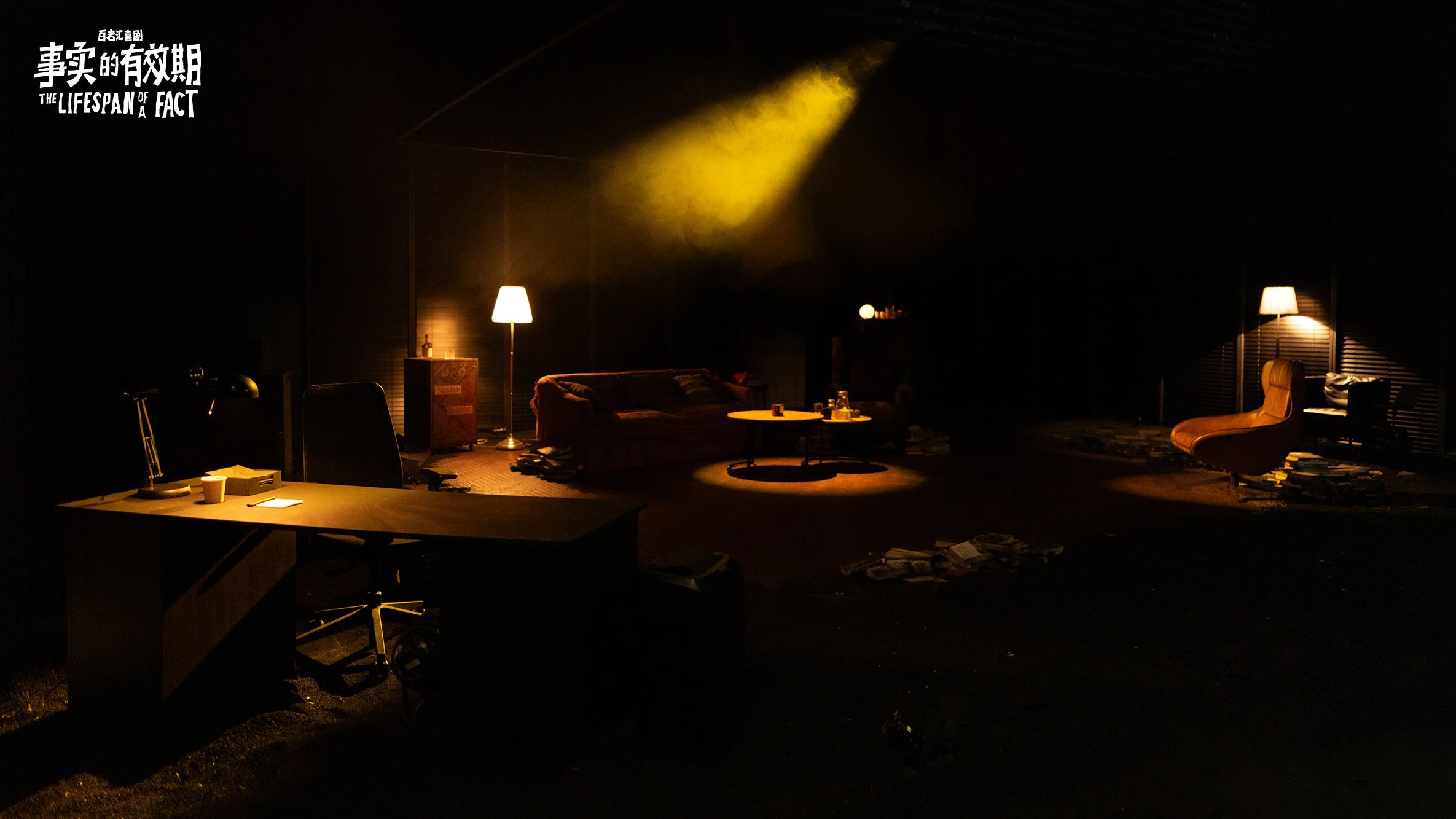 《事实的有效期》舞台看似一个规矩空间,但紧随剧情可随时变换为办公室或家,从而营造出一个多元表演空间。中心区域家具陈设保持现实生活感,而周围百叶窗包围空间则被黑色基调占据。尽管身处以黑色为主的舞台呈现,但借助巧妙舞台设计,演员所饰角色的对立和冲突得以生动凸显。