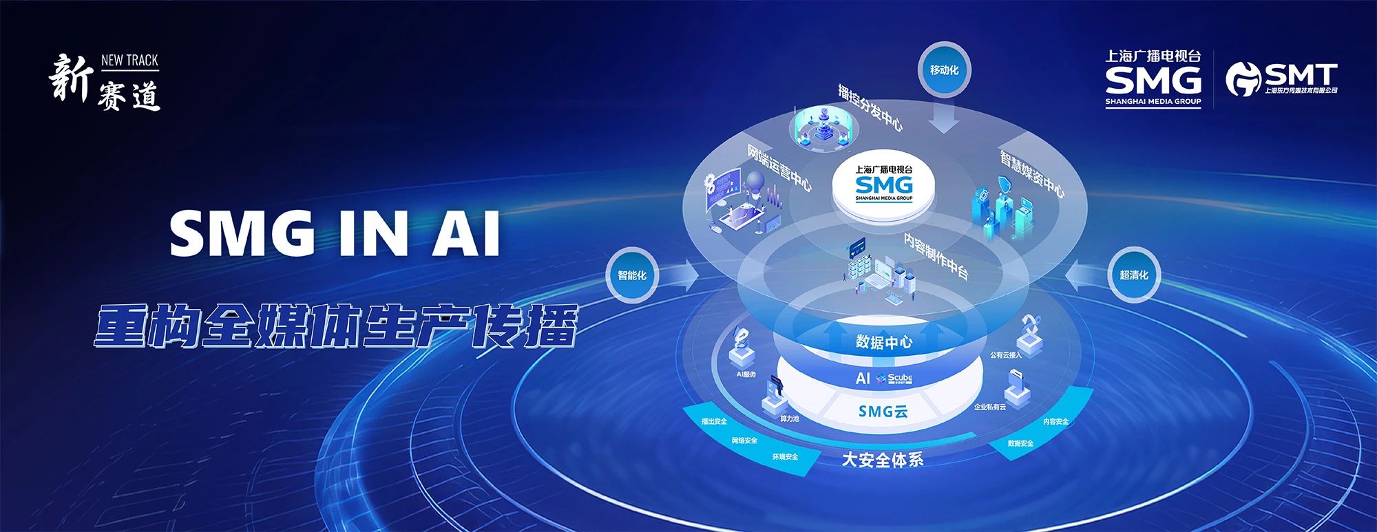 近年来,围绕“SMG in AI”,上海广播电视台技术中心(SMT)聚焦“采编播存发”全流程,用AI重塑媒体技术底座,聚力建设“一中台五中心”,加快智能化、超清化、移动化,对内重构全媒体生产传播机制,向外赋能城市千行百业。