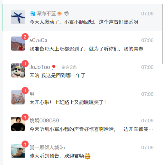时隔多年,11月20日早上,当他俩熟悉的声音再次在《音乐早餐》中响起时,听众们纷纷留言表达了自己的激动与感慨,这种情感共鸣,让大家感受到了别样的温馨。