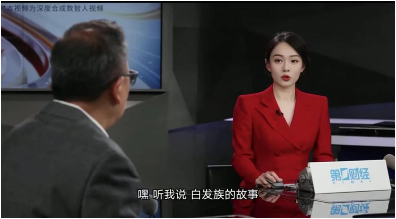第一财经于2024年创新地在投教节目《秒懂金融》栏目中,实现节目画面中的演播室场景、主持人、现场嘉宾全部通过高仿真数智人技术合成,通过文字和语音驱动形成了两个高仿真数智人对话的神奇画面。
