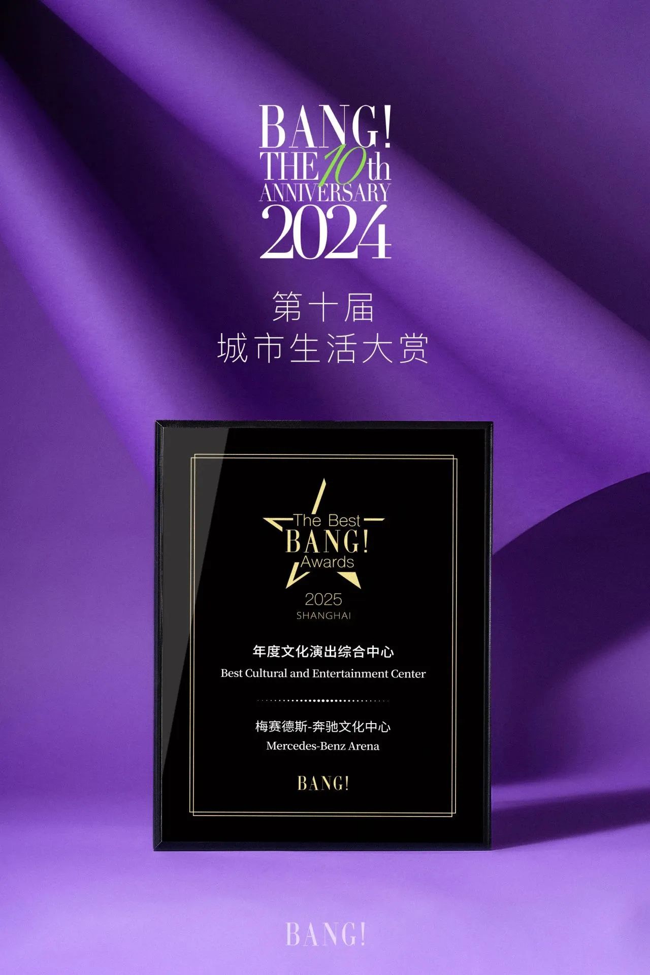 在全国生活时尚届领先媒体——上海BANG Media主办的“第十届The Best BANG Awards 2025年度城市生活大赏”上,梅奔中心荣获“年度文化演出综合中心”称号。今年以来,梅奔中心成功承办了众多国内外顶尖演艺盛事,不仅迎来天王刘德华的震撼回归,还吸引了滨崎步等国际巨星加盟。这一荣誉不仅是对梅奔中心在文化演出领域贡献的肯定,更是对场馆推动文化产业发展、丰富市民文化生活的认可。
