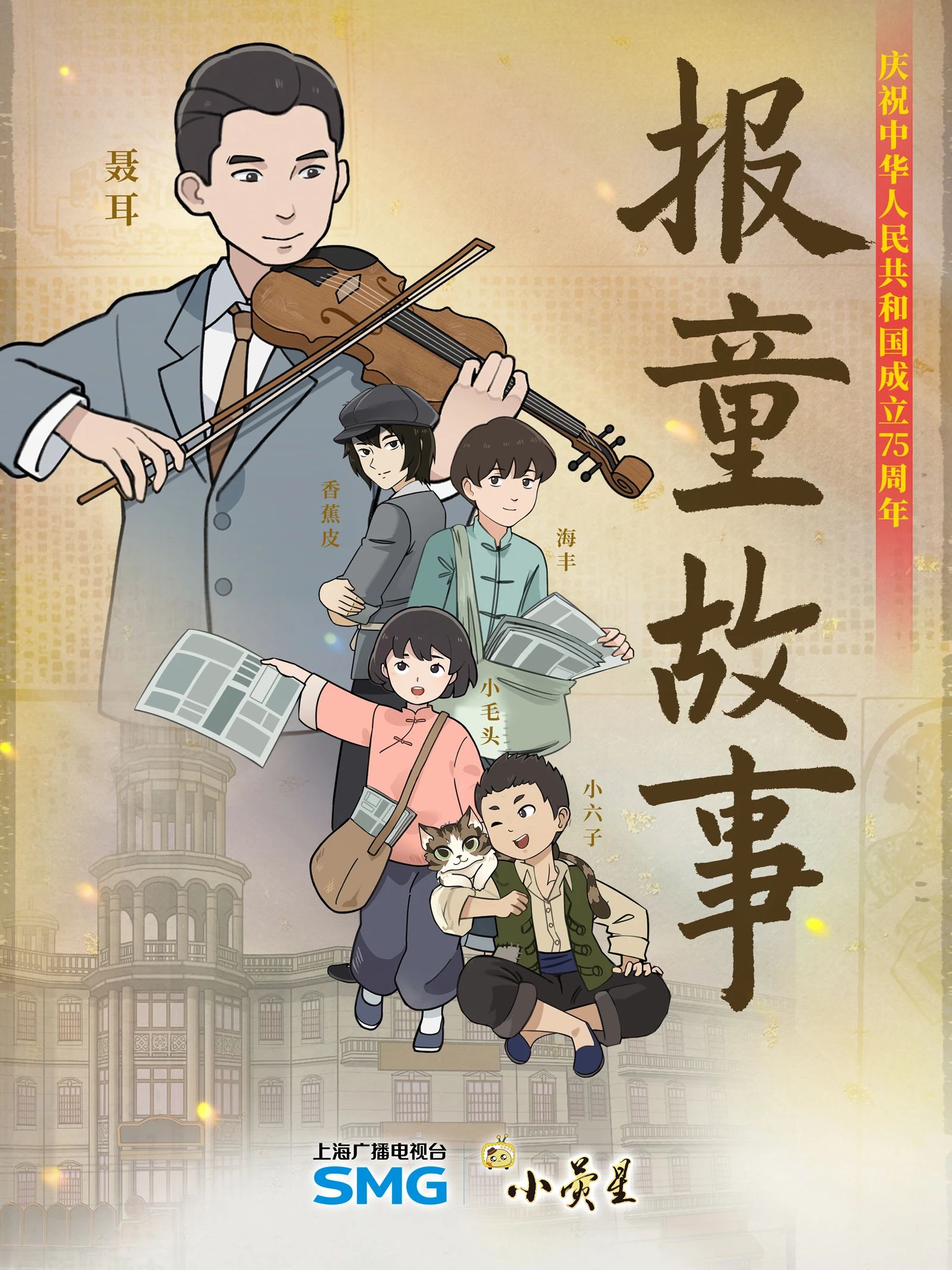 五集原创动画作品《报童故事》以1933年的上海为背景,讲述了聂耳偶遇报童“小毛头”并发现其歌唱天赋,随后创作了传唱大江南北《卖报歌》的故事。该片塑造了报童们勤劳懂事、友爱善良的群像,传递了诚实勇敢、助人为乐等价值观。