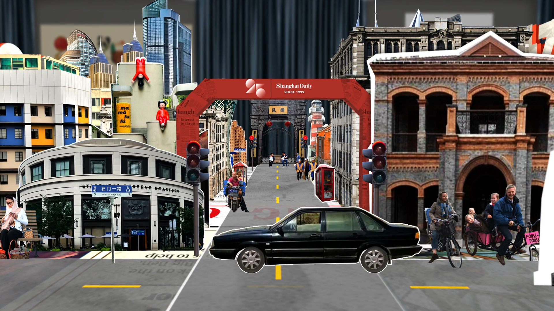 当翻开《上海日报》的一刻,即是翻阅《上海日报》与上海这座城市共同走过的25年。影片还将“Headlines and Skylines”的主题,融入全片——在每一个能看到城市天际线的场景,把每个章节的名称(如“挺括 Vibe”)的中英文标题融合设计其中。整体立体剪贴画的风格中,辅以或静或动的插画人物和物件,呈现出多种材料的collage art(拼贴艺术)风格。这种独特的艺术表现形式不仅让影片更加生动有趣,也更好地展现了《上海日报》与上海这座城市共同走过的25年历程。
