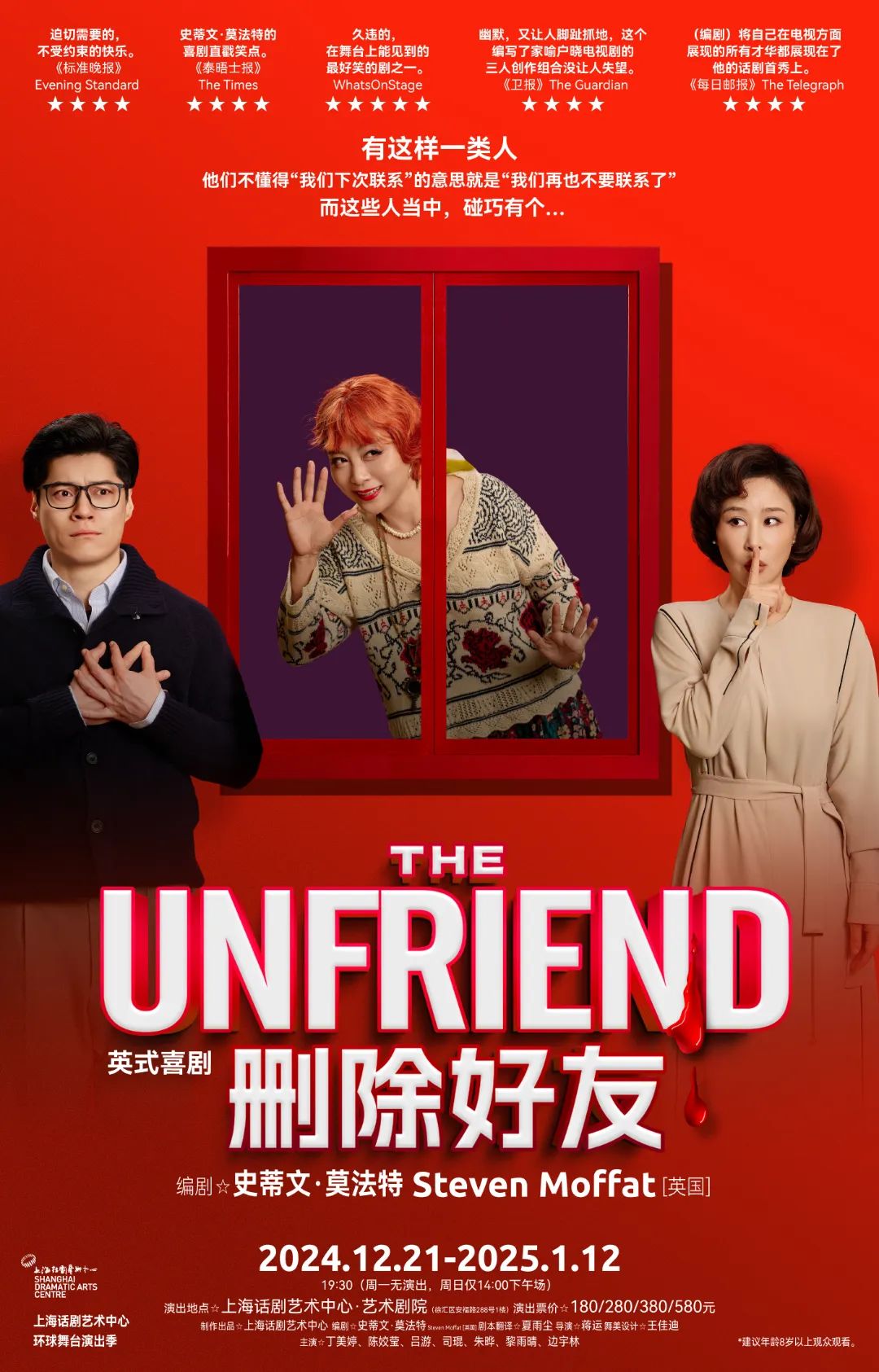 12月21日起,英式喜剧《删除好友》上演于上海话剧艺术中心。
