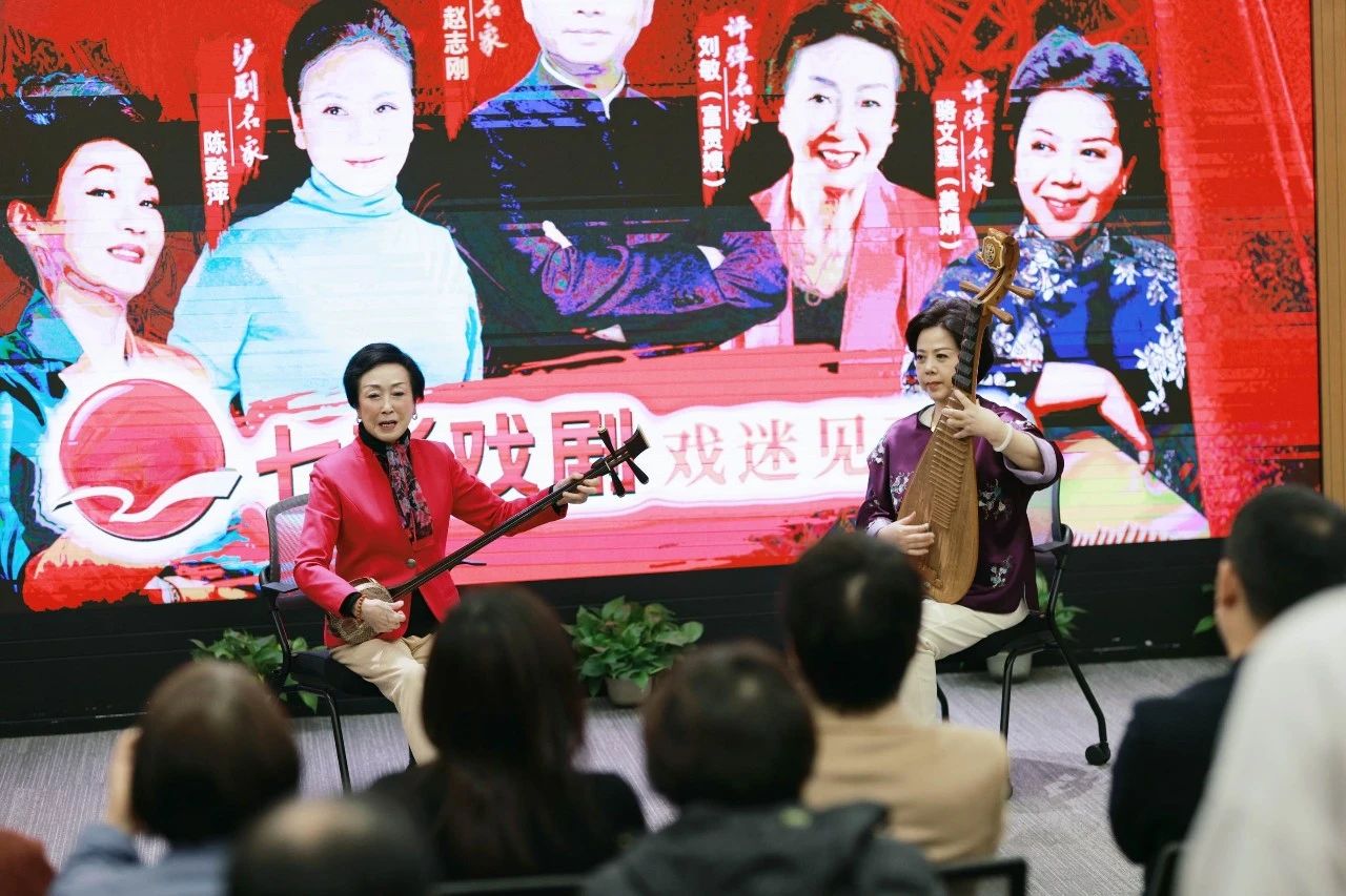 “七彩戏剧免费点播专区”11月18日正式上线东方有线点播平台,广受用户好评。为回馈用户,12月11日,都市乐聆联合东方有线、百视通共同举办了一场 “七彩戏剧戏迷见面会”。活动现场,越剧名家赵志刚、沪剧名家陈甦萍、评弹名家刘敏和骆文莲、以及滑稽名家许海俐,与近百名新老戏迷齐聚一堂,进行零距离互动,共同感受传统戏曲的独特魅力。