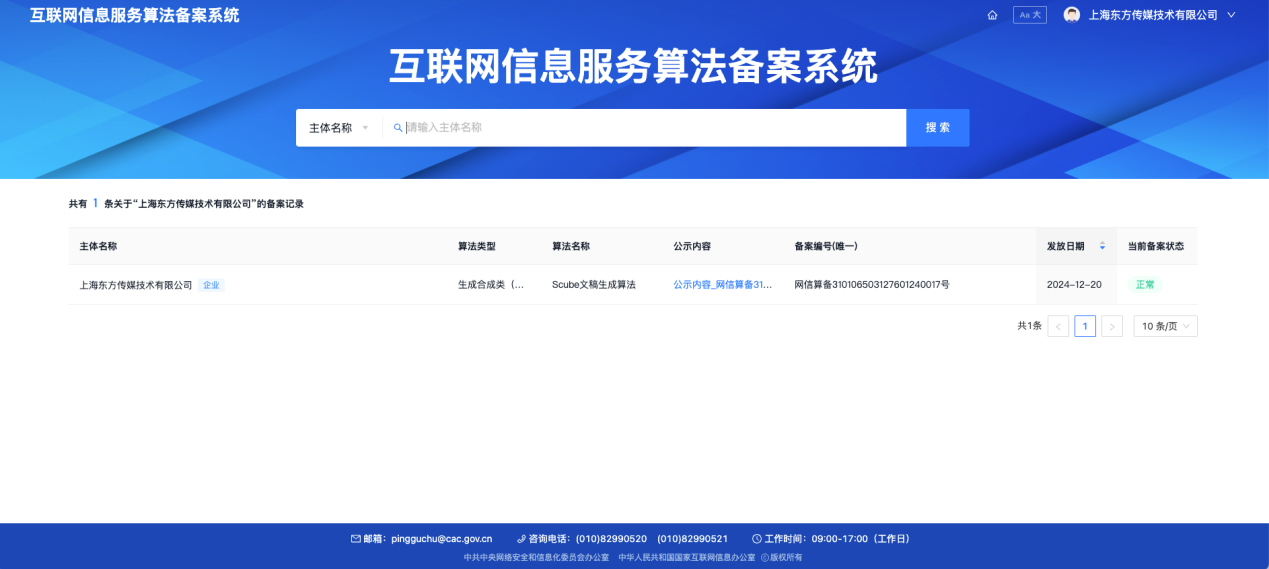 上海广播电视台AIGC应用集成工具Scube(智媒魔方)通过国家级备案