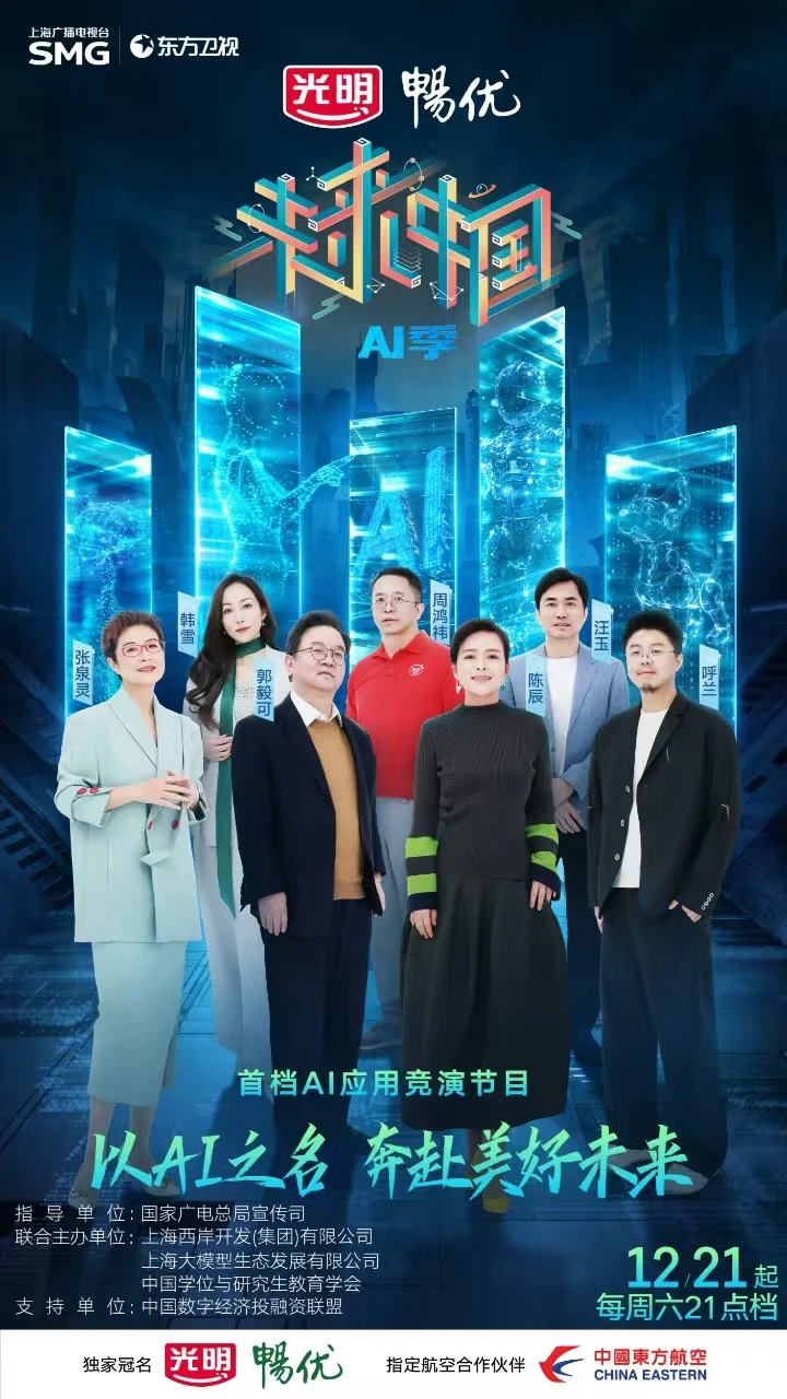 以AI之名,奔赴美好未来!由东方卫视打造的全国首档原创人工智能应用科学竞演节目《未来中国》AI季于12月21日起每周六21点档在东方卫视播出,带领观众一起探索前沿科技,解锁AI的无限可能。“广电独家”撰文,称赞该节目“以东方立场呈现国际视野,并首创‘科学竞演’新物种”。
